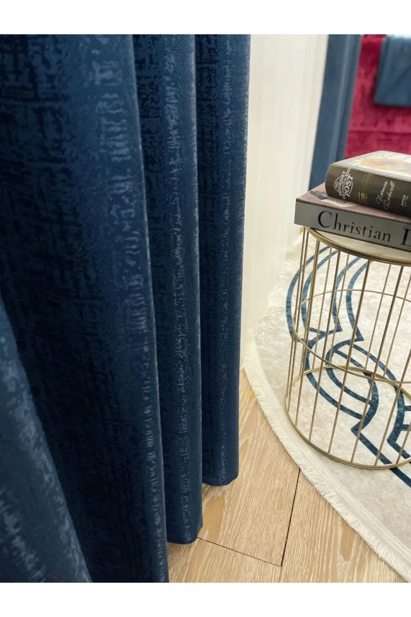 Jakar Zemin Kendinden Desenli 1/2,5 Pile Fon Perde - Lacivert-Lacivert