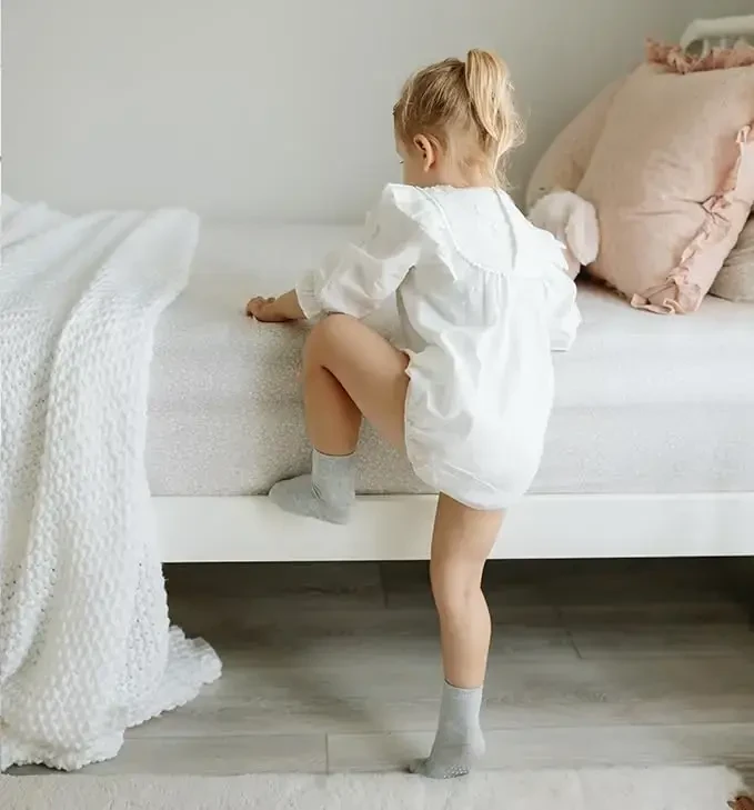 JAKIDAR 12'li Paket Bebek Yürüme Çorapları, kaymaz tabanlı, pamuklu ve konforlu tasarımlarıyla miniklerin hassas ayakları için ideal bir seçimdir. Bu sevimli ve kullanışlı çoraplar, bebeklerin ve çocukların güvenliğini ön planda tutarak, onların rahatça hareket etmelerini sağlar. Yüksek kaliteli malzemelerden üretilmiş olan bu çoraplar, hem konforu hem de dayanıklılığı bir arada sunar. 12 farklı renkteki bu paket, miniklerin gardırobuna renk katarken, ebeveynlere de uzun süreli bir kullanım imkanı sunar. JAKIDAR bebek çorapları, 6 aylıktan 7 yaşına kadar olan çocuklar için uygundur ve farklı yaş gruplarına hitap eden geniş bir beden aralığına sahiptir. Çorapların tabanında bulunan kaymaz silikon noktalar, çocukların özellikle parke, fayans gibi kaygan zeminlerde güvenle yürümelerine yardımcı olur. Bu özellik, emekleme dönemindeki bebekler için de büyük bir avantaj sağlar. Yumuşak ve nefes alabilen pamuklu kumaş, çocukların ayaklarının terlemesini önler ve gün boyu kuru kalmasını sağlar. Elastik yapısı sayesinde ayakları sıkmadan nazikçe sarar ve rahat bir kullanım sunar. Dikişsiz tasarımı sayesinde tahrişe neden olmaz ve çocukların hassas ciltlerini korur. JAKIDAR bebek çorapları, sadece kullanışlı olmakla kalmaz, aynı zamanda şık ve sevimli tasarımlarıyla da dikkat çeker. Farklı renk seçenekleri sayesinde her kıyafetle kolayca kombinlenebilir ve çocukların tarzını tamamlar. Bu çoraplar, hem günlük kullanım için hem de özel günler için mükemmel bir seçimdir. Yüksek kaliteli malzemesi ve özenli işçiliği sayesinde uzun ömürlüdür ve yıkamaya karşı dayanıklıdır. Ebeveynler, JAKIDAR bebek çoraplarını güvenle tercih edebilir ve çocuklarının konforunu ve güvenliğini sağlayabilirler.