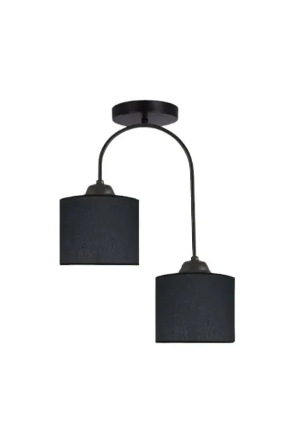 Designed to add elegance and a modern touch to your home, the Janin Modern Decorative Black Plof Living Room - Kitchen - Bedroom 2 Black Fabric Headlights Chandelier stands out with its aesthetic appearance and functional design. Its black color and elegant fabric blend in with any decor, adding a sophisticated touch to your room.