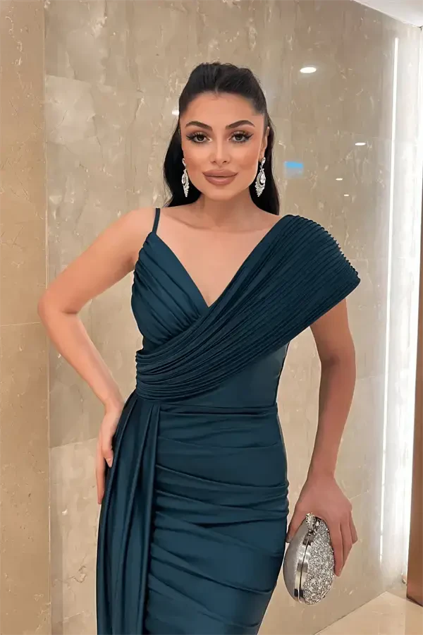 Abiye elbise, jarse kumaş, şal desenli, zümrüt yeşili, davet elbisesi, düğün elbisesi, nişan elbisesi, uzun abiye, özel tasarım, şık elbise