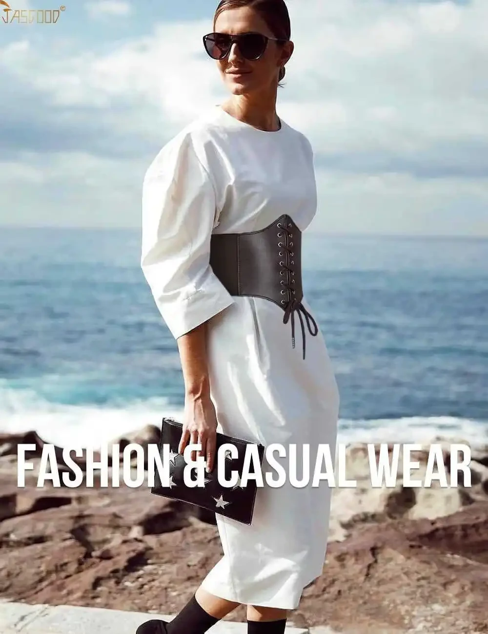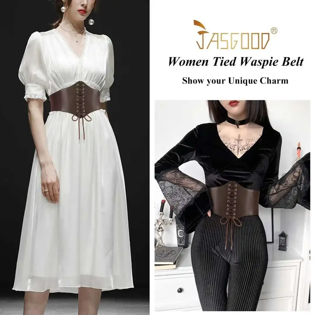 JASGOOD Ayollar uchun jigarrang korsetli keng kamarlar, kiyimlar uchun dantelli bog'langan elastik kamar