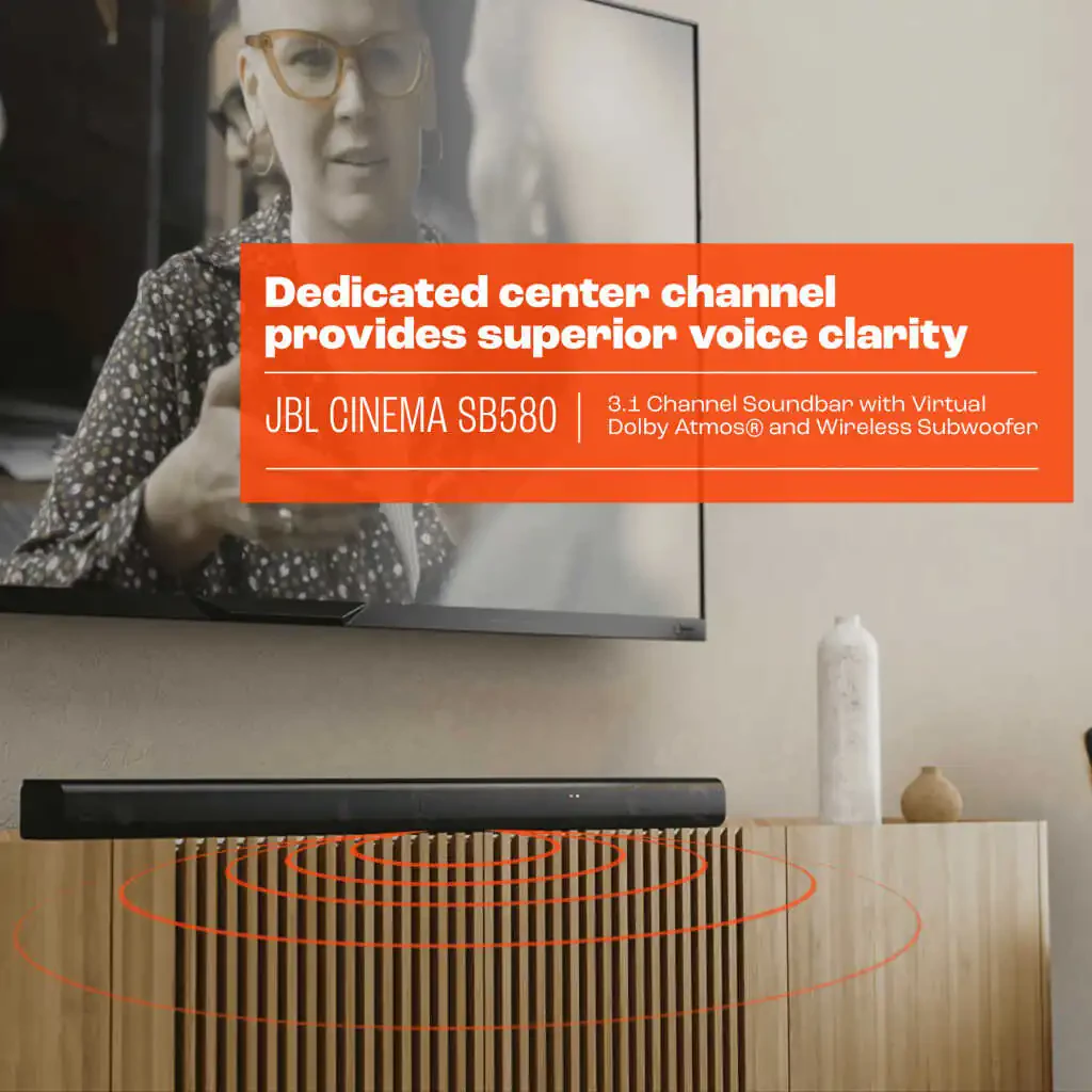 JBL CINEMA SB580: Virtual Dolby Atmos® va simsiz subwooferli 3.1 kanalli soundbar