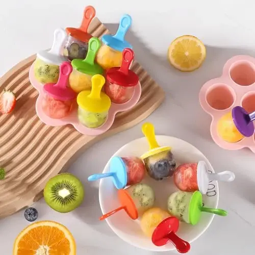 【High-Quality Materials】: This Silicone Popsicle Mold is made of food grade silicone, thicker design, BPA free, temperature range from -40 to 446F, safe to use in oven and fridge conditions. 【Multifunctional】: Our ice pop mold and DIY ice cream mold have multiple uses, perfect for making mini ice cream, ice cubes with fruit juice, jelly for a party, frozen snacks, More perfect for making kids ice cream in summer 【Easy to Release and Clean】: This popsicle molds made of silicone material is soft, non-stick and easy release and can be washed with water and dishwasher liquid after each use. It is very comfortable to use next time 【Creative Design】: The ice cream mold for kids with plastic lids in 7 colors, with this creative design, we can not only make delicious kids food supplements, but also make colorful ice cream, and delicious popsicles, add more fun to our lives! Tips: Because the lid and stick can be combined freely, very young children should use it safely under the care of parents 【The Best Gift】: Silicone ice cream molds bring a lot of fun to our lives. we can use it to make delicious and colorful yogurt, fruits and vegetables. It can also be given to family and friends as an ideal christmas and birthday gift