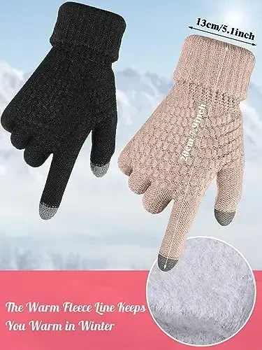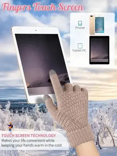 Ayollar uchun qishki shapka va qo'lqoplar to'plami | Sensorli ekranli qo'lqopli 4 qismli to'plam