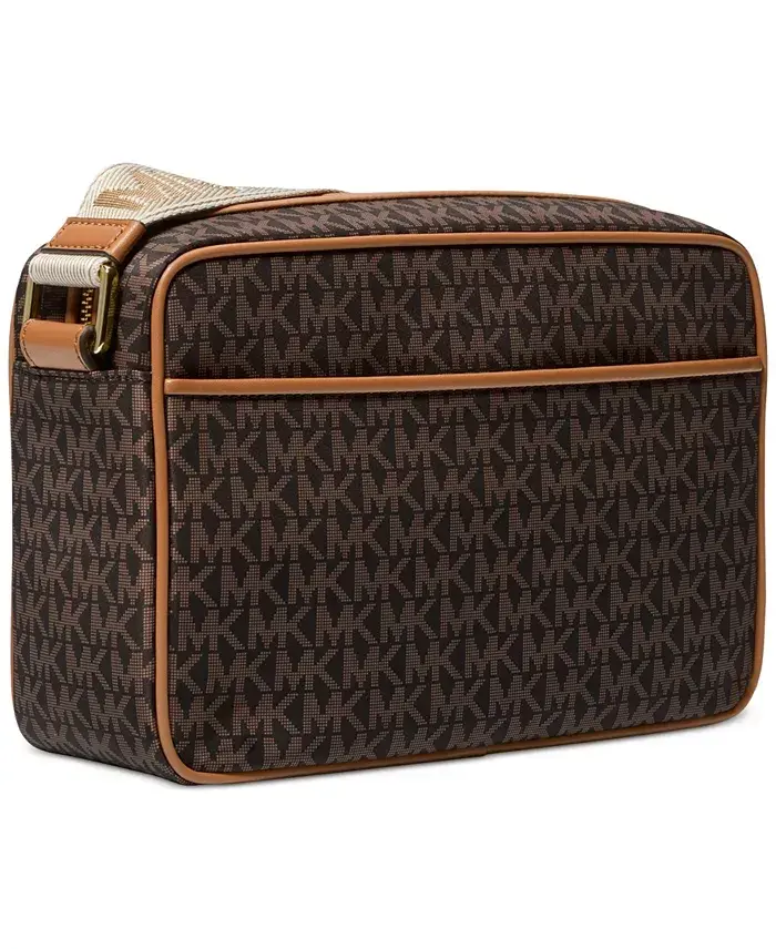 Michael Kors Jet Set Logo East West Nylon Crossbody Çanta, ayarlanadigan yelka tasmasi, ustki fermuar yopilishi, ichki qismida bitta fermuarli cho'ntak va bitta ochiq cho'ntak mavjud. Tashqi qism 69% neylon, 31% polyesterdan; astar 100% polyesterdan ishlab chiqarilgan. O'lchamlari: 24,13 sm (K) x 16,51 sm (B) x 5,08 sm (E).