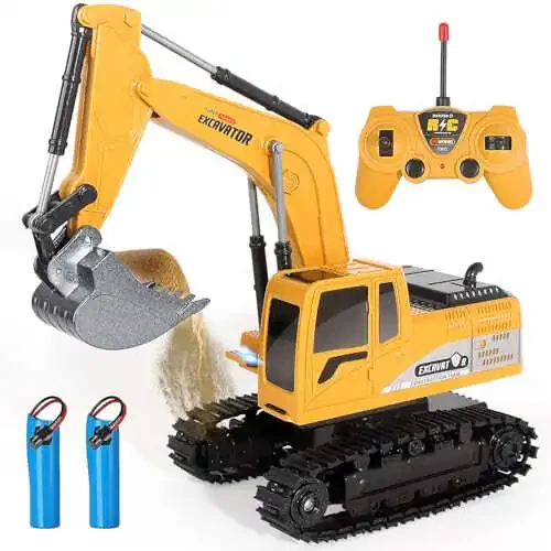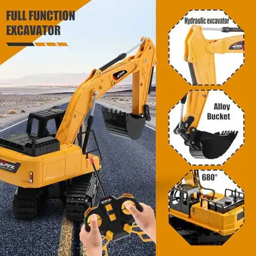 Long-Lasting Play & Sturdy And Realistic Design – 2×1200mAh battery ensures hours of uninterrupted fun, without the need for constant battery replacements. Made with a durable alloy bucket and featuring realistic flashing lights and engine sounds, our toy excavator provides a truly immersive play experience(Pro tip: manually turn the track before installing the battery.) Detailed And Realistic - This 1/24 scale model of a excavator is designed with attention to detail, making it a realistic and visually appealing toy, Equipped with robust rubber tracks, this toy can freely travel on various terrains, replicating the mobility of a real construction vehicle. Featured Multi-Channel Manipulation - The toy excavator can be manipulated flexibly for digging, handling, lifting, etc. Each channel of the excavator can be operated individually or together, giving children a truly immersive experience. With its mechanical sound effects and a flexible robotic arm, this toy brings realism to playtime. Multi-functional remote control excavator - Features a unique and realistic cab that can be rotated a full 680 degrees. With its high-quality construction, this excavator toy is built to withstand rough play and last for years. The 2. 4Ghz Multi-channel controller allows for easy and precise movement, while the playful light and sound effects add to the excitement. Get ready for some rugged adventures with this incredible remote control excavator toy. Outdoor Sand Toys for Toddles - The Little Engineers can spend hours playing with their excavator toy, driving it on the beach or in the yard, and enjoying the ability to scoop, transfer, and dump sand on their very own construction sites. Best Gifts Ideas for Kids - The great holiday surprise gift for your little ones. This fun construction toy will truly amaze your kids and keep them entertained for hours on end. Great for parent-children activity. Also funning toy playing with friends to increase kid’s cooperation ability.