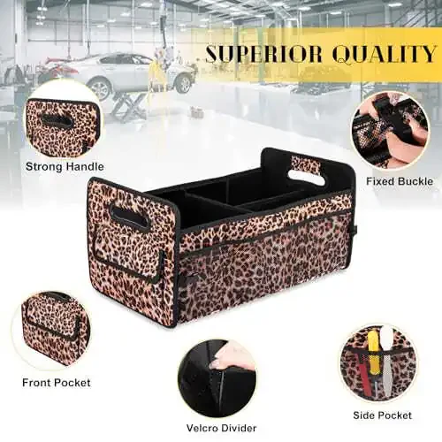 STABILIZING STRUCTURE: The car caddy has thickened high-density dividers all around and at the bottom for support, which can hold its shape well, stable and upright, sturdy. EXCELLENT QUALITY: This small car trunk organizer is made of sturdy, waterproof and resistant 600D Oxford fabric, easy to clean. It has reinforced stitching in the most abrasive areas to withstand heavy use and pass the test of time, with strong load-bearing performance. FOLDABLE CAR ORGANIZER: The car storage organizer can be shrunk or unfolded to fit in the trunk, perfect for business trips travel and supermarket shopping. It can be folded to half length and used as a seat organizer. It can be collapsible completely when not needed and secured with buckle, not easy to fall apart and easy to store. MULTIFUNCTIONAL ORGANIZATION: The small car trunk storage measures 22" L x 12.5" W x 10.8" H when fully expanded, contains 2 big front and rear pockets, 4 side mesh net pockets, 1 big compartment and 2 removable velcro compartments! Large capacity space can meet your daily life needs of organizing and storing various items, easy to access. UNIVERSAL DESIGN: This cargo box as a car accessory is the optimal solution to maintaining your clean car interior . Suitable for all car models, such as SUV, sedan, truck, jeep, minivan, van and so on. Eliminate trunk clutter situation.