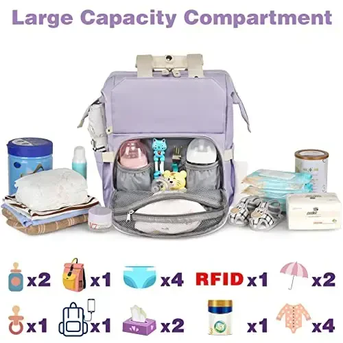 Jiefeike Diaper Bag Backpack is a stylish and functional baby care bag in purple. Designed for both mothers and fathers, this backpack is specially designed to meet all your needs during travels and daily use. It stands out with its large internal volume, insulated pockets, USB charging port, RFID anti-theft pocket and water-resistant fabric. This bag, where you can store everything from baby diapers to baby bottles, from clothes to wet wipes in an orderly manner, offers practicality and elegance together. This bag, which makes the lives of parents easier, allows you to carry everything you need for baby care with you. Whether on daily outings or long travels, the Jiefeike Diaper Bag Backpack will be a product you won't want to be without. This bag, which is both stylish and eye-catching with its purple color, allows you to reflect your style while carrying your baby items. Get rid of the clutter of your baby care bag with Jiefeike Diaper Bag Backpack and have a regular and practical experience. This bag is not just a baby care bag, but also a helper that makes the lives of parents easier. Thanks to the USB charging port, you can always charge your phone, and you can keep your personal information safe with the RFID anti-theft pocket. Thanks to its water-resistant fabric, you can safely carry your belongings without being affected by weather conditions. Jiefeike Diaper Bag Backpack is a candidate to be indispensable for families with babies.