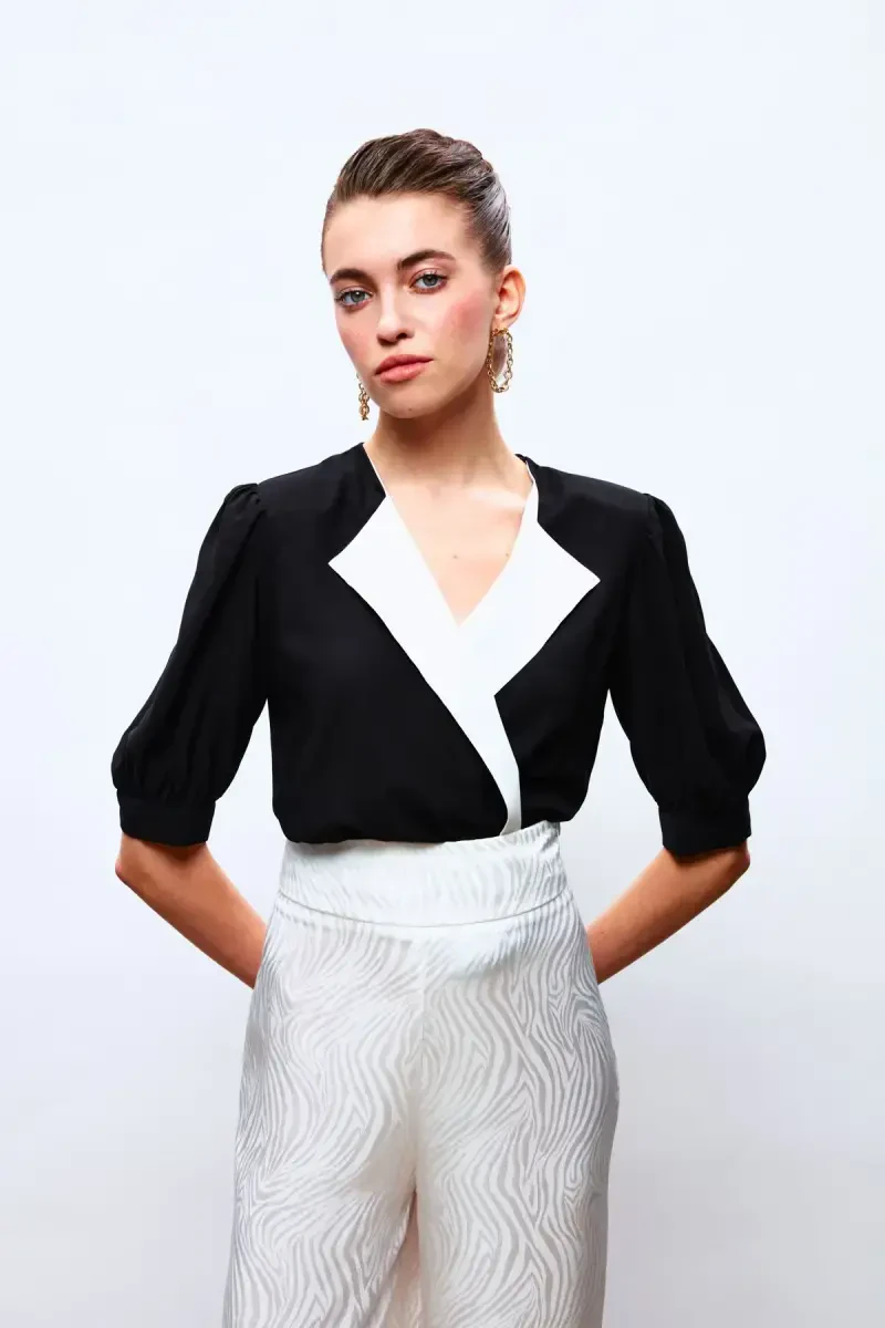 Nafislik va qulaylikni birlashtirgan Jilet Yaka Bodysuit Bluzka bilan uslubingizni to'ldiring! Nozik jilet yakasi va tanaga mos keladigan kesimi bilan hayratlanarli ko'rinishni taqdim etadigan bu bluzka, kundalik hayotingizda va maxsus kunlaringizda uslubingizni ustunlikka chiqaradi.