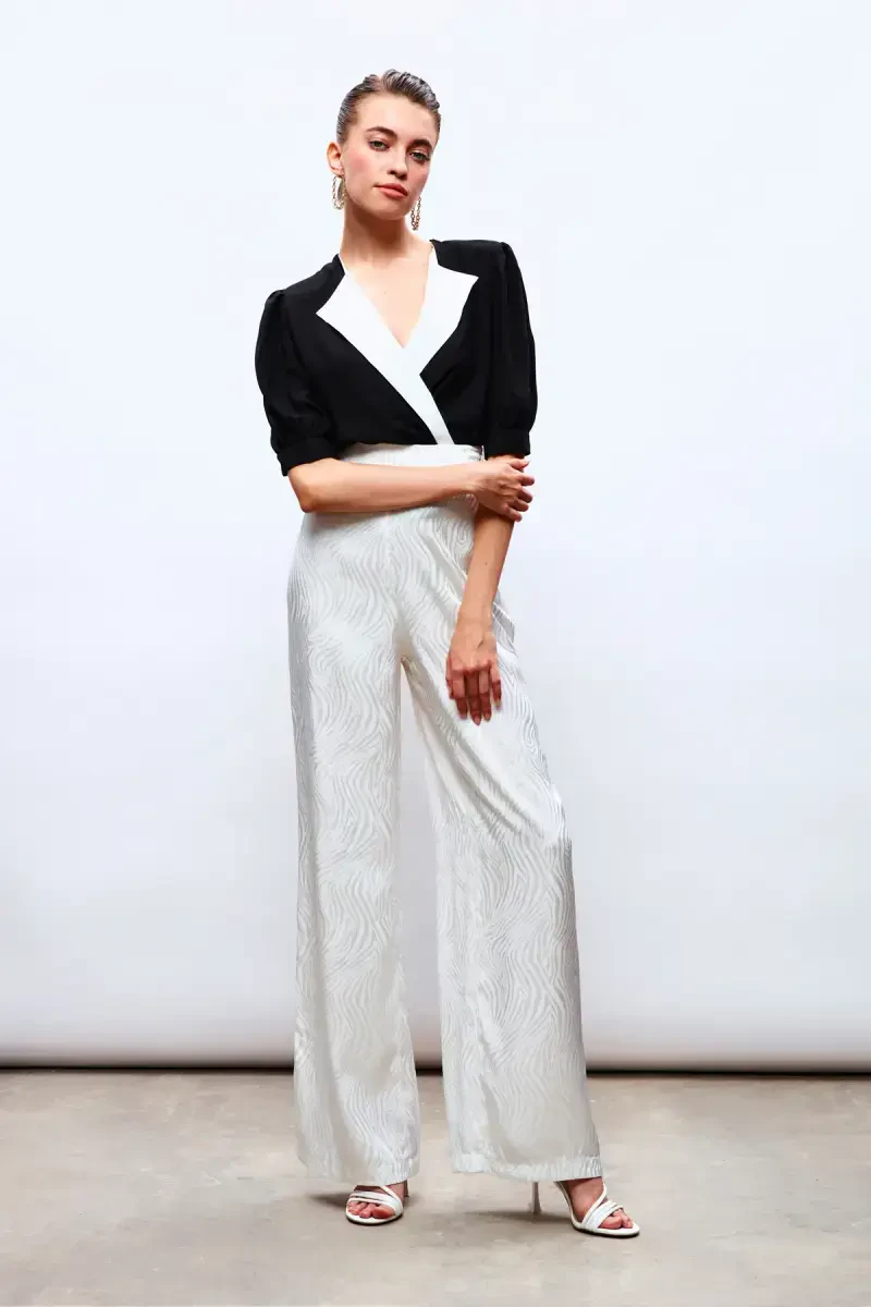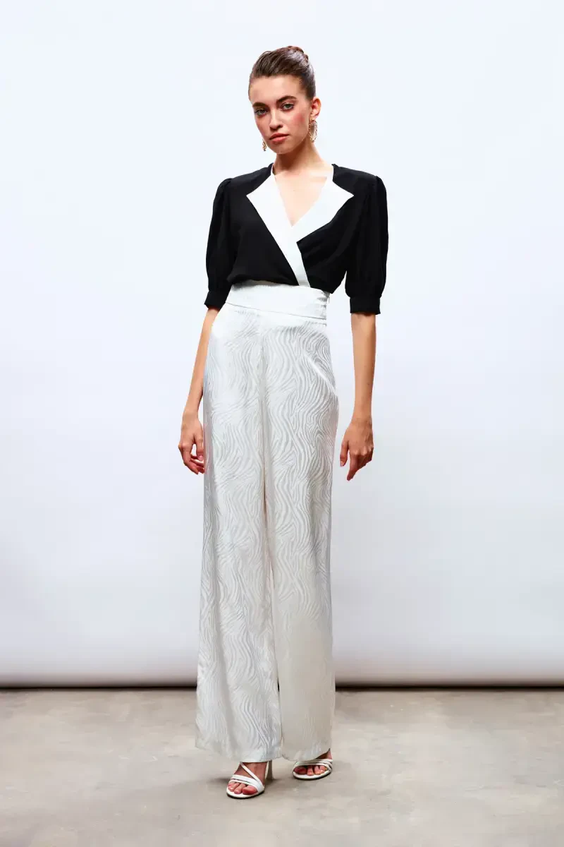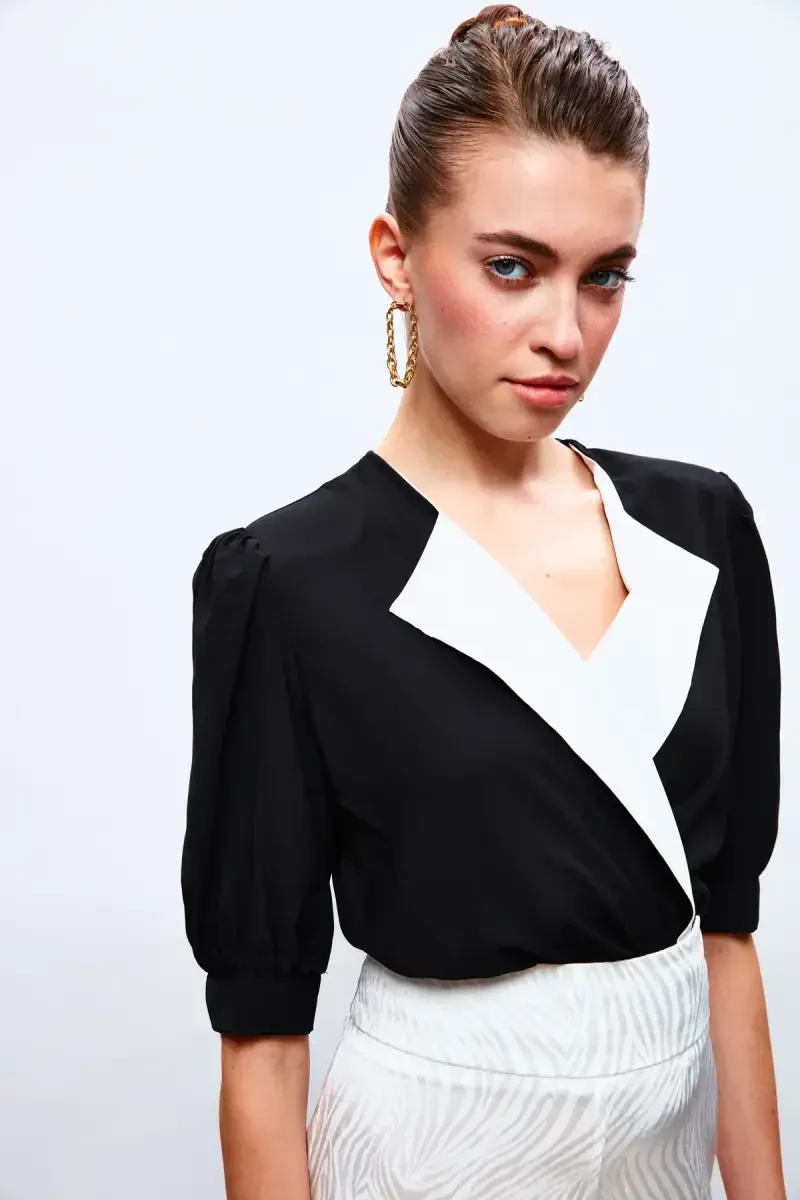 Yuqori sifatli matodan tayyorlangan Jilet Yaka Bodysuit Bluzka, yumshoq to'qimasi bilan kun bo'yi qulaylik beradi. Elastik tuzilishi tufayli harakat erkinligingizni cheklamaydi va har bir qadamda o'zingizni erkin his qilasiz.