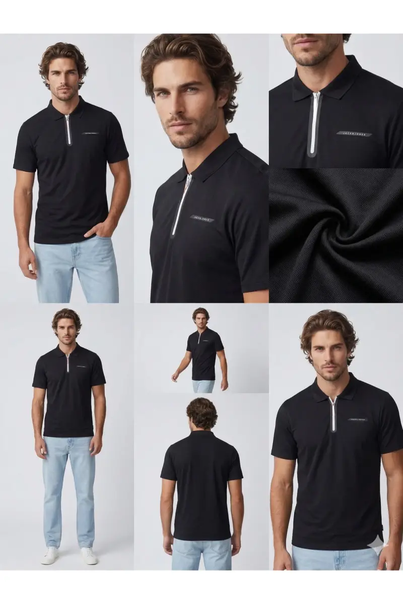 J&J JCOFUSION Pique Polo Yaka Erkek Premium Tişört Siyah-Pike