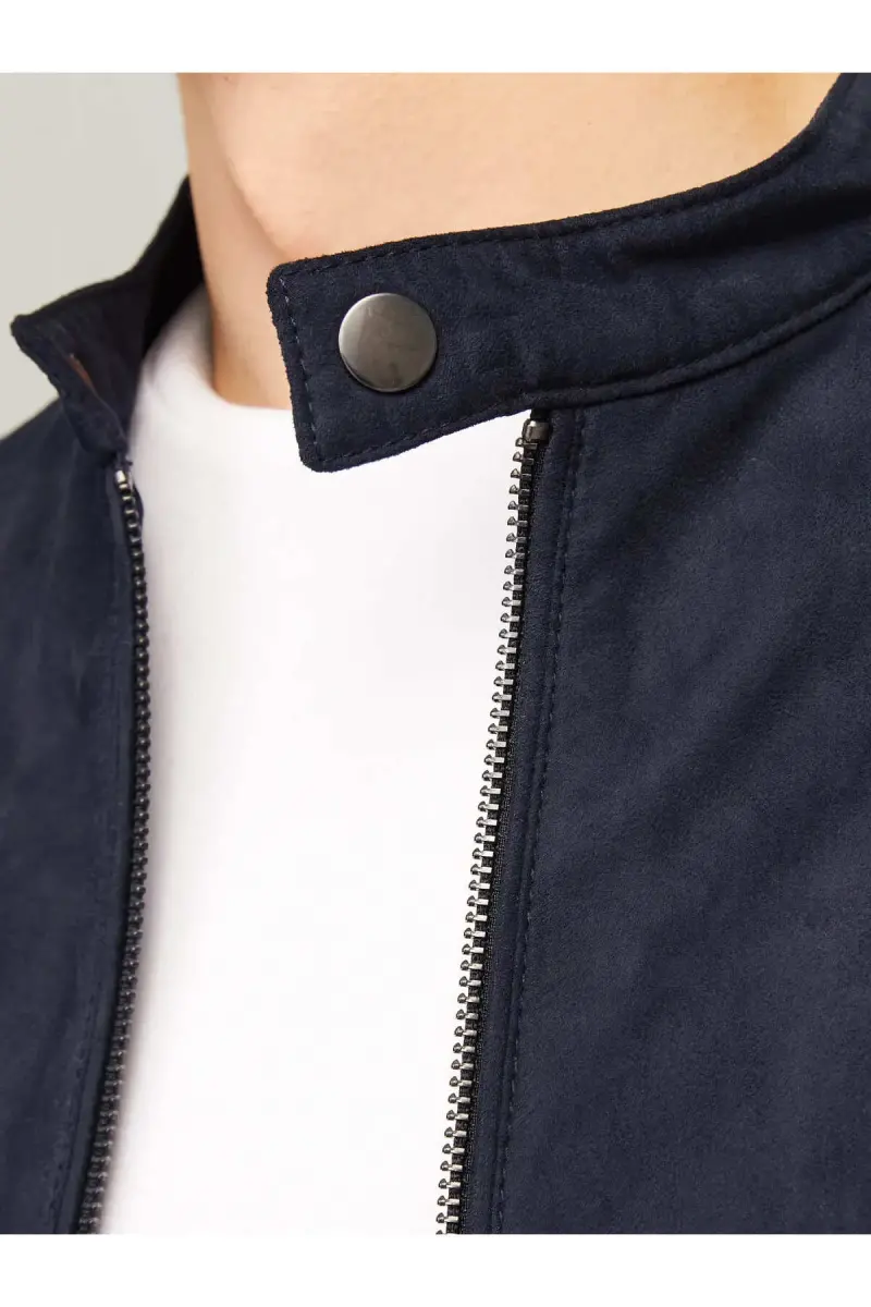 J&J Trendy Erkek Biker Style Pu Deri Ceket-Jet Black / Clean