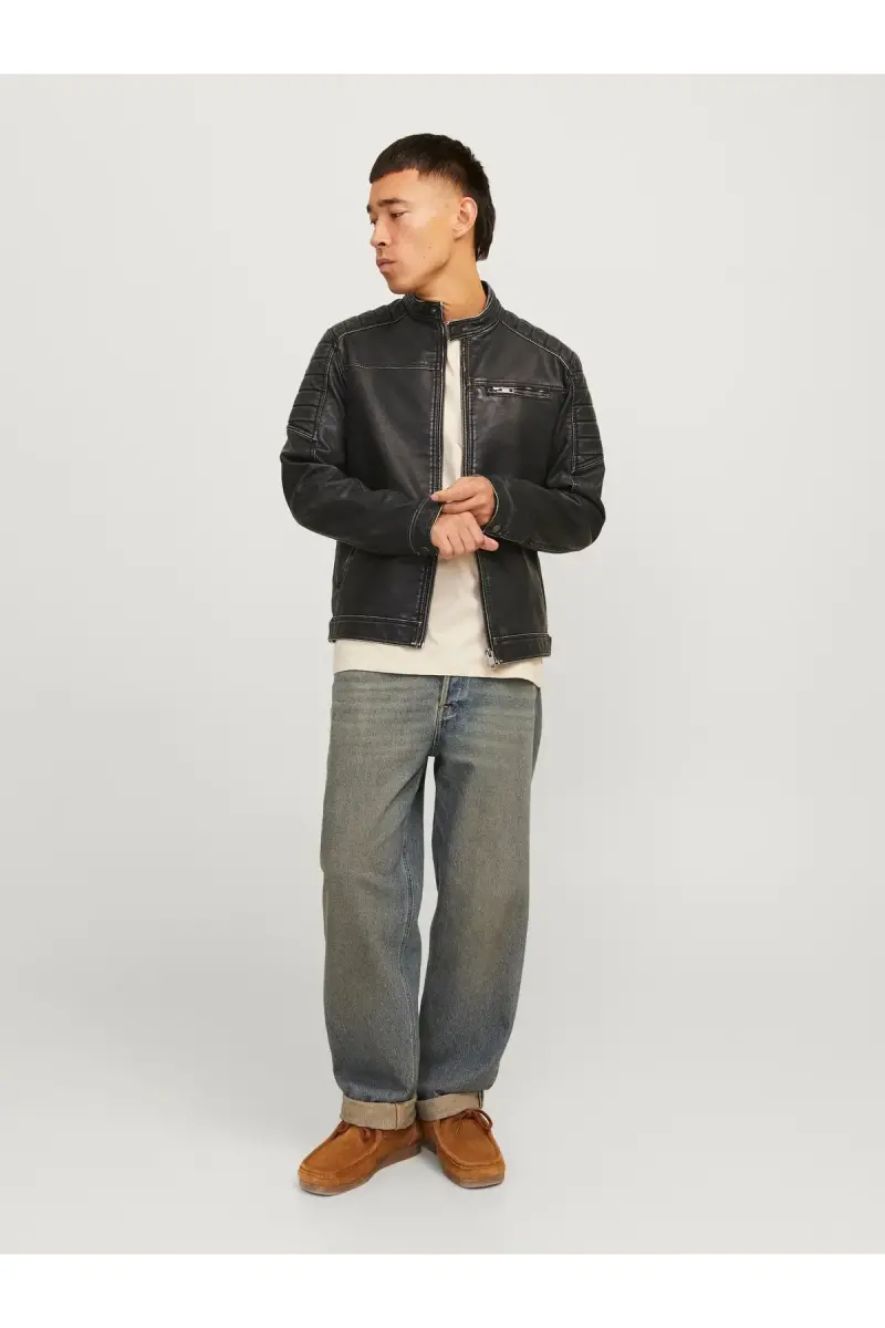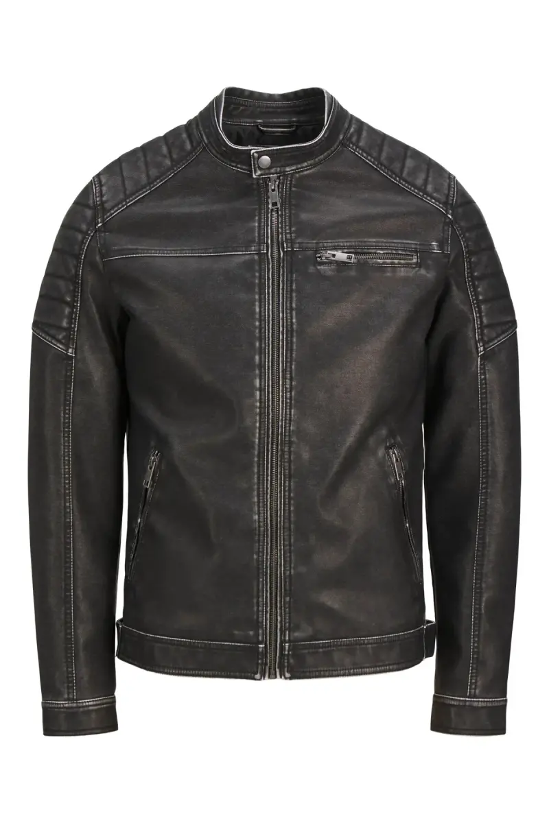 Jjewarner Jacket Noos Siyah Erkek Deri Ceket Eskitme Taşlanmış-Siyah55
