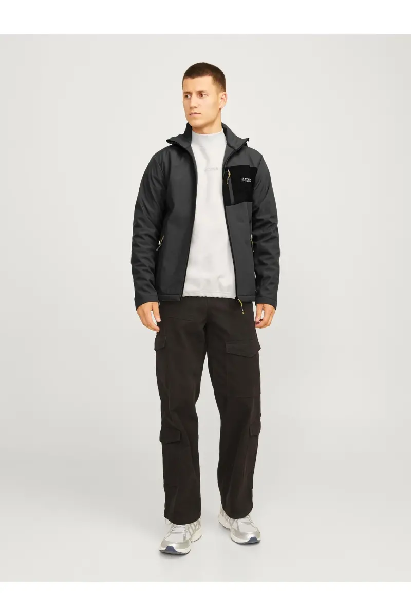 The JJTAYLOR SOFTSHELL Jacket is an outerwear piece that combines style and functionality. With its anthracite color, the jacket blends seamlessly into any outfit and is perfect for everyday wear. Its waterproof and windproof features protect you from rain and cold weather, while its breathable construction provides a comfortable experience.