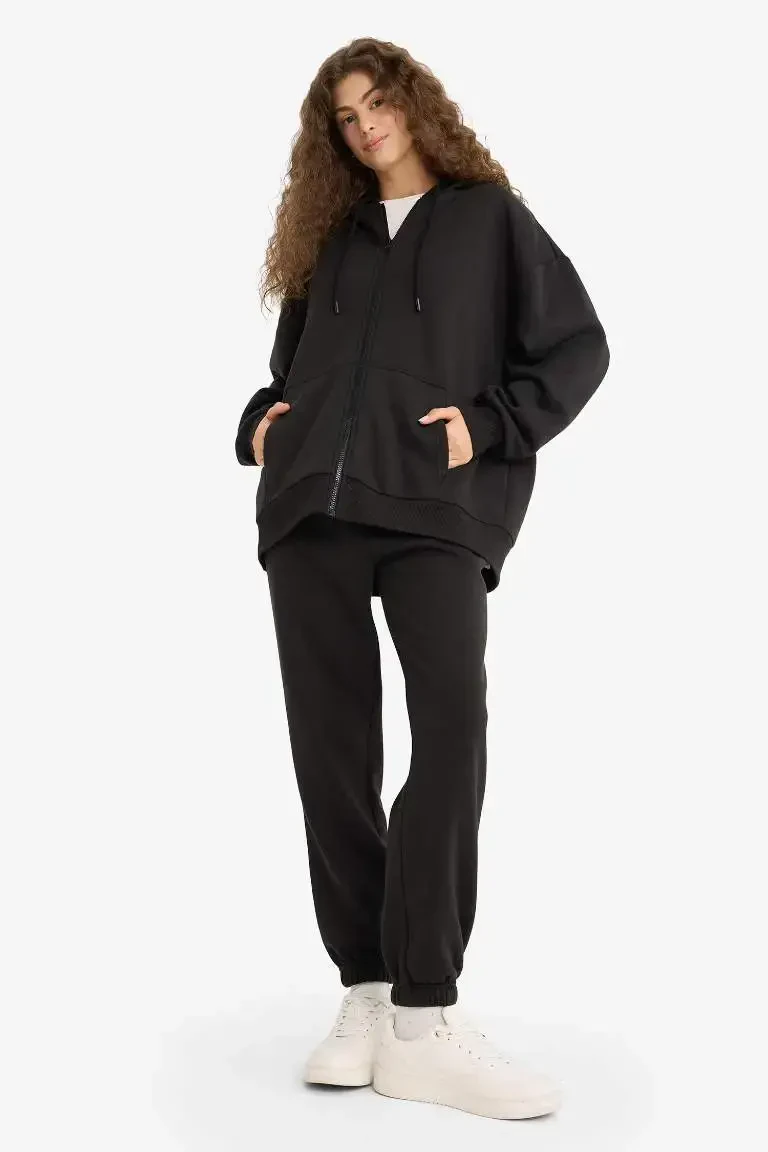 Jogger sweatpants with a flexible waistband, long length, thick fabric, and comfortable fit. Ideal for everyday use.**Product Description**Designed for those seeking the perfect blend of comfort and style in today's fast-paced life, the Jogger Sweatpants with Flexible Waistband, Long Length, and Thick Fabric are set to become an indispensable part of your wardrobe. Combining the elegance of black, a modern cut, and superior comfort, these sweatpants offer an ideal option for those who want to relax at home and look stylish outside.One of the most distinctive features of these sweatpants is the flexible waistband design. This design not only provides a sporty look but also allows you to be comfortable all day long without restricting your freedom of movement. The flexible waistband on the ankles also allows the sweatpants to perfectly match your shoes.The long length cut provides a stylish and modern silhouette, adapting to all body types. The long length of the sweatpants provides extra protection in cold weather while also allowing your sneakers or boots to look better.The thick fabric makes the sweatpants not only comfortable but also durable and long-lasting. Thanks to the choice of quality materials, the sweatpants can withstand repeated washing and retain their original form. The thick fabric also keeps you warm in cold weather, making it an indispensable piece in winter.The comfortable fit offers comfortable use throughout the day without restricting your freedom of movement. Whether you are relaxing at home, exercising, or meeting friends, these sweatpants will always accompany you. Thanks to its comfortable fit, it fits your body perfectly and makes you feel like you are not wearing anything all day long.The black color makes the sweatpants versatile and easily combinable with different styles. You can achieve different looks by combining it with a sporty t-shirt, a stylish sweatshirt, or even a shirt. The timeless elegance of black makes the sweatpants always fashionable and trendy.Jogger Sweatpants with Flexible Waistband, Long Length, and Thick Fabric are not just a piece of clothing, but also an expression of a lifestyle. Combining comfort, style, and quality, these sweatpants are an excellent choice for anyone with a modern and active lifestyle. Easily combinable with other pieces in your wardrobe, these sweatpants will always make you feel stylish and comfortable.**Product Features*** Flexible waistband* Long length* Thick fabric* Comfortable fit* Ideal for daily use**Additional Information**Size worn by the model: SFabric content: 100% CottonWashing Instructions: Machine washable at 30 degrees.Ironing: It is recommended to iron at low heat.Do not use bleach.