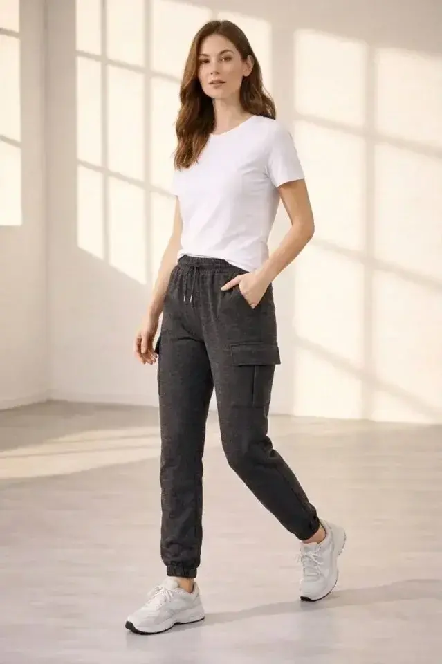 Jogger Eşofman Altı Rahat Kalıp, Kargo Cepli, Lastikli Paça, Günlük Spor Pantolon - Füme