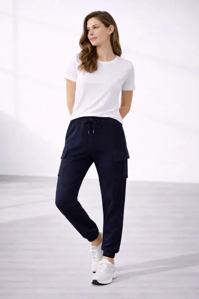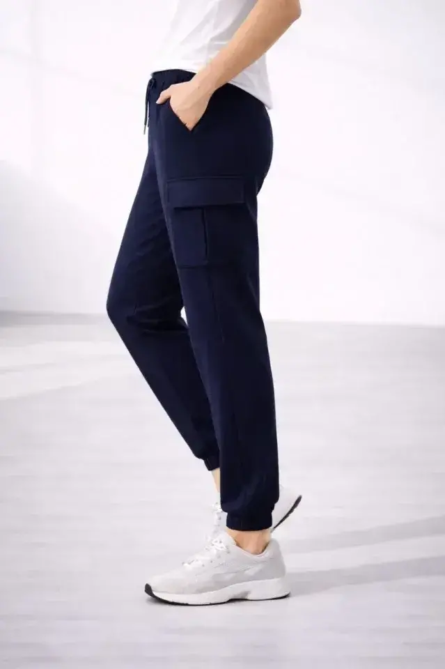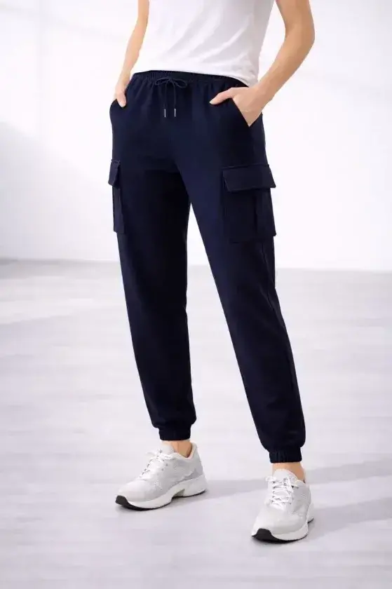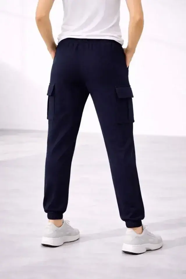 Jogger Eşofman Altı Rahat Kalıp, Kargo Cepli, Lastikli Paça, Günlük Spor Pantolon - Lacivert