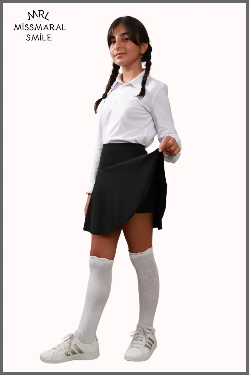 Jr Black Shorts Skirt is a perfect option for both sports and daily use with its tights inside and flounced design. This shorts skirt is offered with the assurance of MİSSMARAL and is a must-have piece in the wardrobe of young and dynamic girls. The mini-length cut provides an energetic look, while the tights inside do not restrict freedom of movement. This product, also known as a tennis shorts skirt, can be easily used, especially in sports activities. The woven fabric increases the durability of the shorts skirt, while the lined structure provides comfort in contact with the skin and prevents irritation. The Diver/Scuba weaving type offers a stylish and modern style, while the elasticity of the fabric offers all-day comfort. Offered with a single package content, this product can be easily combined and offers practical use. Black is a classic option that is always in fashion and is easily compatible with different tops. The "Young" persona feature reflects the energetic and dynamic style of young people, while the minimalist design without pockets gives a stylish and functional look. With size dimensions suitable for children aged 7-8, this shorts skirt fits their body lines perfectly. Thanks to its elasticated waist, it is easy to put on and take off and provides comfort all day long. As part of the Petite collection, they attract attention with their elegant silhouettes. The plain pattern highlights simplicity and can be paired with any type of top. The high-waisted pattern helps you have modern lines while providing a comfortable fit. This shorts skirt is produced with the principle of sustainability and is designed using environmentally friendly materials. Suitable for both daily use and sports activities, this versatile piece will become an indispensable part of your wardrobe. Thanks to its 90% polyester blend material, it has lightness and breathability properties. With its medium thickness, it keeps you at the ideal temperature in seasonal transitions. The beltless design contributes to your modern and stylish stance and reduces the need for extra accessories. You can choose this piece every season and keep up with timeless fashion. In order for the product to be long-lasting, it is important to take care of it in accordance with the washing instructions. This shorts skirt, which offers freedom of movement thanks to its flexible structure, allows children to play and do sports comfortably. Black color guarantees elegance by adapting to any environment. This product, offered with Missmaral quality, is both a stylish and useful option. This piece, which should be in the wardrobe of girls, can be easily preferred both in daily use and on special occasions. This product, which you can find on Trendyol, also attracts attention with its discounted price.
