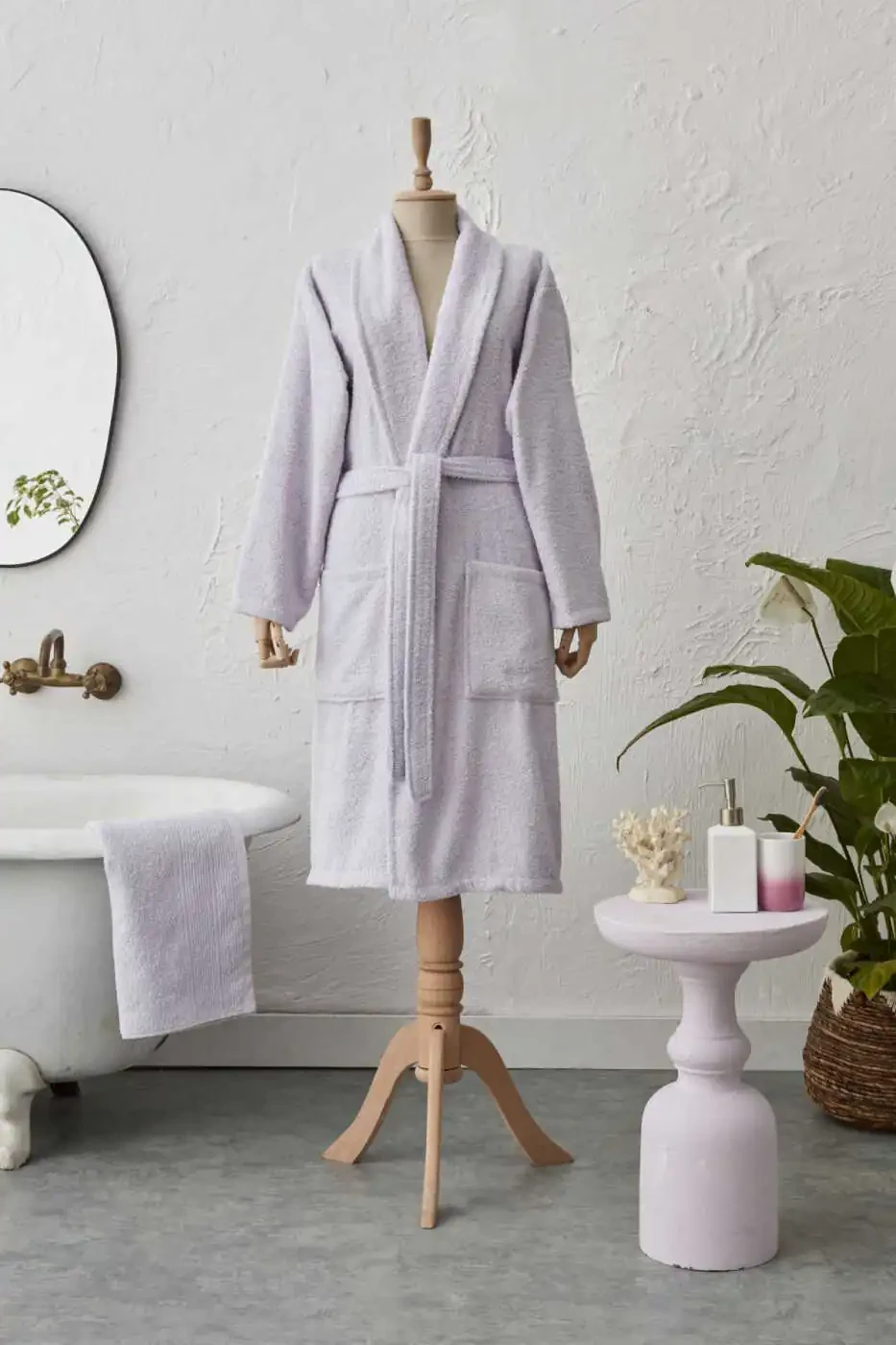 Mahsulotning uzoq umr ko'rishi uchun yuvish bo'yicha ko'rsatmalarga muvofiq yuving. Oqartirgich ishlatmang. Past haroratda dazmollang. To'plamga 1 dona xalat, 1 dona sochiq va 1 juft terlik kiradi.