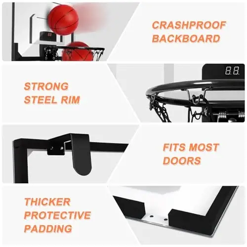 Jugana Over The Door Basketball Hoop, sağlıklı spor alışkanlıkları geliştirmeye ve stresi azaltmaya yardımcı olur. Ürün, kolayca taşınabilir ve saklanabilir yapısı sayesinde istediğiniz her yerde basketbol keyfini yaşamanızı sağlar. Kurulum kılavuzu kutu içerisinde yer almaktadır. Pil gereklidir (kutuya dahil değildir). Çocukların güvenliği için, ürünün kurulumu ve kullanımı sırasında bir yetişkinin gözetimi önerilir.