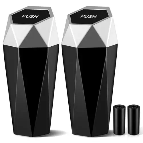 JUSTTOP Car Trash Can with Lid, Easy to Clean, Diamond Design Small Automatic Portable Trash Can, Used in Car Home Office Interior Accessories, 2PCS(Silver)
