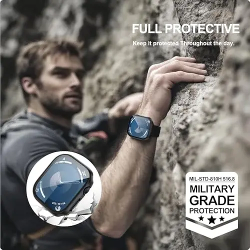 Apple Watch Series 11, Apple Watch Series 10, 46mm case, tempered glass, screen protector, iWatch accessories, smart watch protection, shockproof, scratch-resistant, black case