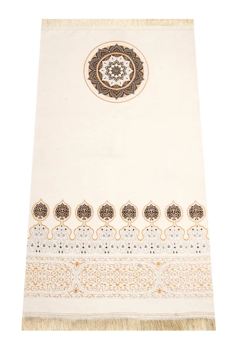 The Kaaba Patterned Ultra Plus Cream Chenille Prayer Rug 11-Cream is a special product designed with inspiration from the Kaaba cover, which will bring the spiritual atmosphere to your home. This fully woven prayer rug is decorated with Kaaba patterns and does not contain any verses, which does not pose any obstacle to your prayer. This prayer rug, woven with high quality chenille yarns, means that the patterns on it are not printed or dyed, but directly embroidered with yarns. Thanks to this feature, it is long-lasting and durable. This first class domestic production prayer rug does not slip and offers safe use. In addition, you will not encounter problems such as shedding and pilling. You can choose it as a dowry or offer it as a meaningful gift to your loved ones. In addition to being ideal for daily use, it is also a perfect option to make your loved ones happy on special occasions. It is also very suitable for distributing to baby shower, Hajj and Umrah visitors. Thanks to its thin structure, it can be easily carried and stored. The prayer rug provides a clean and smooth surface while praying, thus helping your body and clothes stay clean. At the same time, it deepens the meaning of your prayer by increasing your spiritual feelings. It helps you focus your attention and allows you to worship in a disciplined manner. It offers comfort especially for those with knee sensitivity. You can make your prayers more peaceful and meaningful with this special prayer rug that brings the spiritual atmosphere of the Kaaba to your home. This product with high spirituality is not just a prayer rug, but also a tool for worship. The texture and pattern of the prayer rug will inspire you while praying and remind you of the sacredness of the Kaaba. This special design will add an aesthetic touch to your home, while also making your worship more special and meaningful. The Kaaba Patterned Ultra Plus Cream Chenille Prayer Rug is an ideal choice for anyone who values spiritual values. This prayer rug is not just a product, but also an expression of a lifestyle and belief.