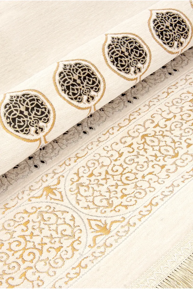 Kabe Desenli Ultra Plus Krem Şönil Seccade 11-Krem, Kabe örtüsünden ilham alınarak tasarlanmış, manevi atmosferi evinize taşıyacak özel bir üründür. Tamamen dokuma olan bu seccade, Kabe desenleriyle bezenmiştir ve üzerinde ayet bulunmamaktadır, bu da namaz kılmanıza herhangi bir engel teşkil etmez. Yüksek kaliteli şönil ipliklerle dokunmuş olan bu seccade, üzerindeki desenlerin baskı veya boya olmadığı, doğrudan ipliklerle işlendiği anlamına gelir. Bu özelliği sayesinde uzun ömürlü ve dayanıklıdır. Birinci sınıf yerli üretim olan bu seccade, kayma yapmaz ve güvenli bir kullanım sunar. Ayrıca, dökülme ve tüylenme gibi sorunlarla karşılaşmazsınız. Çeyizlik olarak tercih edebilir veya sevdiklerinize anlamlı bir hediye olarak sunabilirsiniz. Günlük kullanım için ideal olmasının yanı sıra, özel günlerde sevdiklerinizi mutlu etmek için de mükemmel bir seçenektir. Bebek mevlidi, Hac ve Umre ziyaretçilerinize dağıtmak için de oldukça uygundur. İnce yapısı sayesinde kolayca taşınabilir ve saklanabilir. Seccade, namaz kılarken temiz ve düzgün bir yüzey sunar, böylece bedeninizin ve kıyafetlerinizin temiz kalmasına yardımcı olur. Aynı zamanda, manevi hislerinizi artırarak namaz ibadetinizin anlamını derinleştirir. Dikkatinizi odaklamanıza yardımcı olur ve disiplinli bir şekilde ibadet etmenizi sağlar. Özellikle diz hassasiyeti olanlar için rahatlık sunar. Kabe'nin manevi atmosferini evinize getiren bu özel seccade ile namazlarınızı daha huzurlu ve anlamlı kılabilirsiniz. Maneviyatı yüksek bu ürün, sadece bir seccade değil, aynı zamanda bir ibadet aracıdır. Seccadenin dokusu ve deseni, namaz kılarken size ilham verecek ve Kabe'nin kutsallığını hatırlatacaktır. Bu özel tasarım, evinize estetik bir dokunuş katarken, aynı zamanda ibadetlerinizi daha özel ve anlamlı hale getirecektir. Kabe Desenli Ultra Plus Krem Şönil Seccade, manevi değerlere önem veren herkes için ideal bir seçimdir. Bu seccade, sadece bir ürün değil, aynı zamanda bir yaşam tarzının ve inancın ifadesidir.