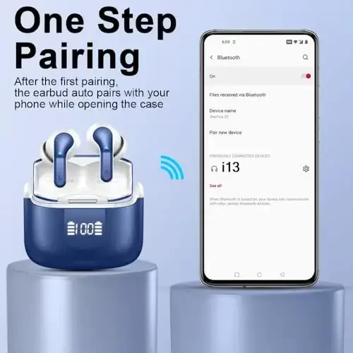 Wireless Earbud Bluetooth 5.4 Headphones, Hi-Fi stereo ovoz sifati, ENC shovqinni bekor qilish, uzoq batareya muddati va suv o'tkazmaslik kabi xususiyatlari bilan ajralib turadigan, mini o'lchamli va nafis dizayndagi quloqchindir. Laptop, planshet, TV va telefonlaringiz bilan mos keladigan bu quloqchinlar, to'q ko'k rangi bilan tarzingizni aks ettirsa, ilg'or texnologiyasi bilan ham sizga yuqori ovoz tajribasini taqdim etadi. Xoh sport bilan shug'ullaning, xoh sayohat qiling, xoh kundalik ishlaringizni bajaring, bu quloqchinlar sizga hamroh bo'ladi va hayotingizni osonlashtiradi.