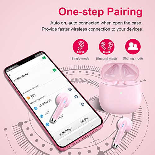 New Bluetooth 5.4 and Fast Pairing: J51 wireless earbuds are equipped with the latest generation Bluetooth 5.4 chip, providing faster and more stable connections. The new Bluetooth 5.4 standard better protects against interference signals, providing a flawless audio experience during calls. After connecting for the first time, the Bluetooth headphones automatically pair with your device when you take them out of the box. The impressive Hi-Fi stereo sound and clear call: The wireless headphones feature 13mm drivers that boost quality sound with deep bass and mids at optimal levels that are pleasing to the ears. You will feel like an immersive concert. The built-in mic in each bluetooth earphones utilizes call noise cancellation to ensure clear and realistic sound. It will allow you to enjoy high-quality conversations anytime, anywhere. 3g only ultra-light earbud with supermini portable charging case: the pocket-sized charging case does not take up any space to carry, and you will not have any pressure on wearing the 3g ultra-light ear buds. The ergonomic design provides a comfortable and secure fit that doesn’t protrude from your ears, especially for sports, workouts, gym. With the better functions and the exquisite design, our bluetooth headphones are your better choice for a gift. Touch control your devices of iOS or Android by the earbuds: the noise cancelling earbuds support dual-ear touch control, providing convenient operation on the volume control, previous/next song, pause and answer calls along as well as voice assistant control. Bringing you the true wireless experience when you use the iOS or Android smartphones, pc, tablets, laptops, TV... Also, nothing is more important than workout always with music. 32 hrs in total, 6-8 hrs single playtime, USB-C fast charging, and IP7 waterproof: The playtime lasts for over 6-8 hours from a single charge and a total of 32 hours with a charging case. Fully charge the rechargeable case in only 1.0 hours via a fast-charge USB-C cable. Sweat-and-weather-resistant earbuds with microphone are made with a precision-designed case to protect splashproof when you're doing the gym or running outside, so the in ear headphones must be a great sports companion.