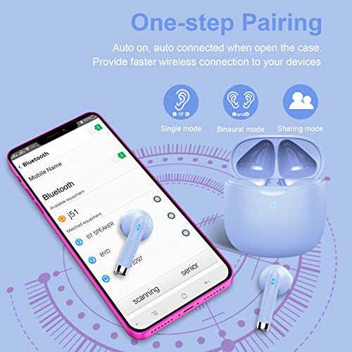 Jxrev Wireless Earbuds, Bluetooth 5.3 Headphones in Ear with Noise Cancelling Mic, Earbuds Stereo Bass, IP7 Waterproof Sports Earphones, 32H Playtime USB C Charging Ear Buds Purple for Android iOS