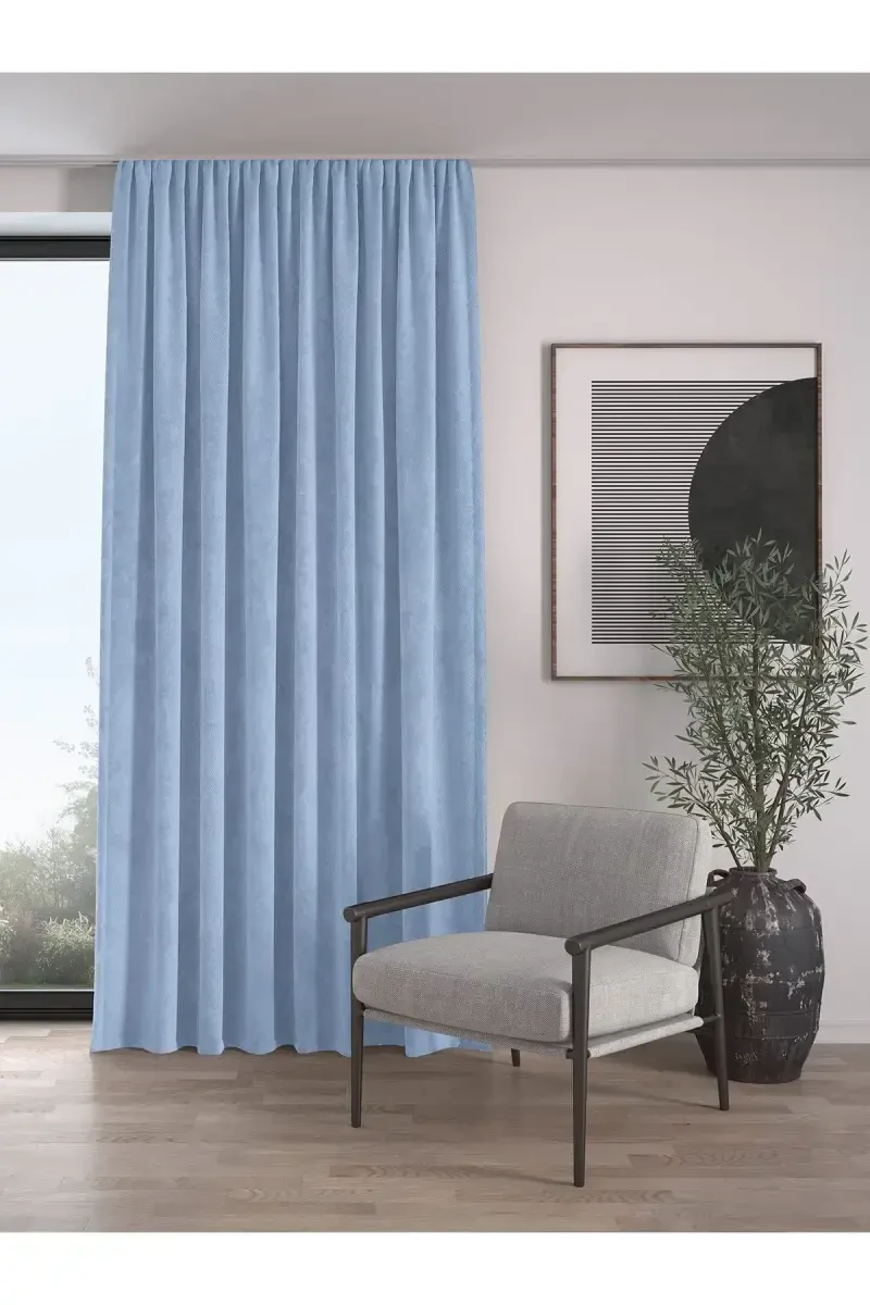 Velvet Textured Pleated Extrafor Sky Blue High Quality Curtain Single Panel - Sky Blue adds a sophisticated touch to your home while offering functional use. The high-quality velvet texture gives your room a luxurious feel, while the pleated extrafor structure makes it easy to install and remove. The sky blue color brings freshness and peace to the space, helping you create a calm atmosphere in your living areas. Designed as a single panel, this curtain is ideal for smaller windows or decorative uses. It perfectly filters the light, providing an ideal level of brightness during the day while protecting your privacy. Thanks to its durable material, this curtain offers long-lasting use and will be an indispensable part of your home decoration.Product DescriptionAdd elegance and comfort to your living spaces with the Velvet Textured Pleated Extrafor Sky Blue High Quality Curtain. This single panel curtain attracts attention with its high-quality velvet fabric and carefully designed details. The sky blue color adds a fresh atmosphere to your room, helping you create a peaceful and calm environment. Thanks to its pleated extrafor structure, it can be easily mounted and adapts to different curtain rails. The soft texture of the velvet fabric creates a pleasant feeling when you touch the curtain and adds a luxurious touch to your space. This curtain stands out not only with its aesthetic appearance but also with its functional features. By effectively filtering sunlight, it maintains the ideal brightness level of your room and prevents your furniture from fading. At the same time, it blocks curious glances from the outside, ensuring your privacy at home. This curtain, made of high-quality materials, is long-lasting and durable. Thanks to its easy-to-clean feature, you can use it as if it were new for many years. The Velvet Textured Pleated Extrafor Sky Blue High Quality Curtain is an ideal choice to add a sophisticated touch to your home decoration and increase your quality of life. This curtain can be used in different spaces such as living room, bedroom or study room and easily adapts to all kinds of decoration styles. Create a unique atmosphere in your home with this curtain that combines elegance, comfort and functionality.Product Features* Made of high quality velvet fabric.* Offers easy installation thanks to its pleated extrafor structure.* The sky blue color adds freshness and peace to the space.* Designed as a single panel.* Filters sunlight to provide ideal brightness level.* Provides privacy by blocking outside views.* Durable and long-lasting.* Easy to clean.* Adapts to different curtain rails.* Can be used in different spaces such as living room, bedroom, study room.* Easily adapts to all kinds of decoration styles.* Creates a pleasant feeling with its soft texture.* Improves the atmosphere of the room and increases the quality of life.* Prevents fading of furniture.Additional InformationDry cleaning is recommended for cleaning the product. There may be slight differences in the color tone of the product due to screen resolution and light differences. The dimensions of the product are as specified and may show +/- 3% deviation. The product is sent as a single panel. If you need more than one panel, please specify the number of pieces accordingly.