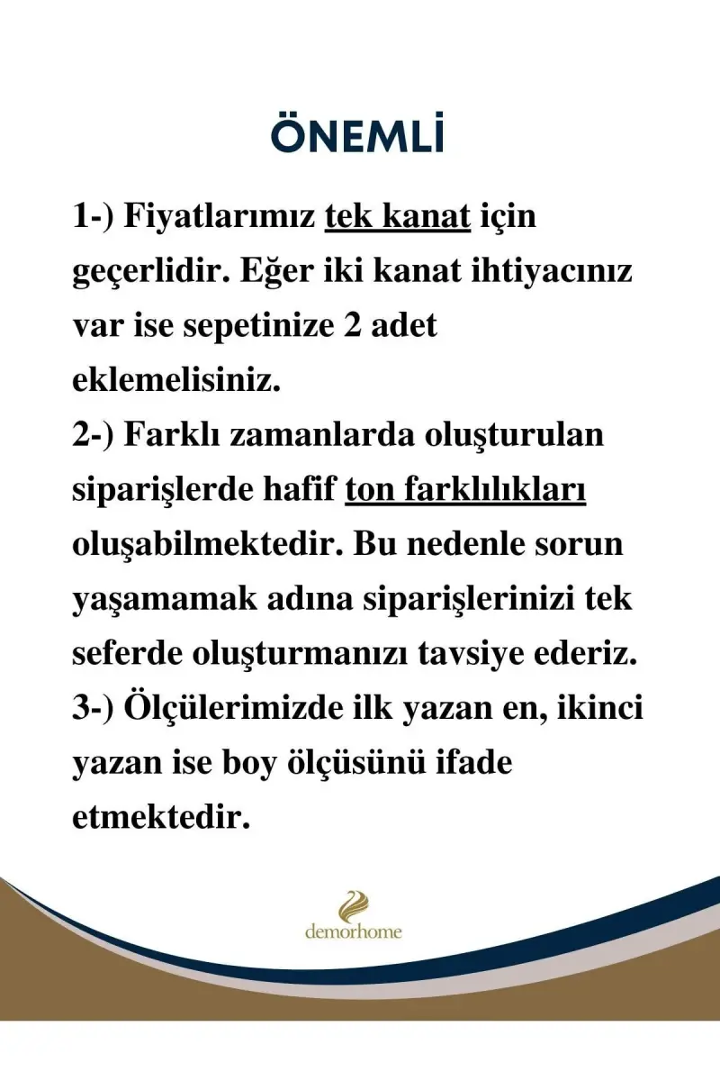 Bu ürün Demor Home tarafından gönderilecektir.Kampanya fiyatından satılmak üzere 100 adetten fazla stok sunulmuştur.İncelemiş olduğunuz ürünün satış fiyatını satıcı belirlemektedir.Bir ürün, birden fazla satıcı tarafından satılabilir. Birden fazla satıcı tarafından satışa sunulan ürünlerin satıcıları ürün için belirledikleri fiyata, satıcı puanlarına, teslimat statülerine, ürünlerdeki promosyonlara, kargonun bedava olup olmamasına ve ürünlerin hızlı teslimat ile teslim edilip edilememesine, ürünlerin stok ve kategorileri bilgilerine göre sıralanmaktadır.Bu üründen en fazla 6 adet sipariş verilebilir. 6 adedin üzerindeki siparişleri Trendyol iptal etme hakkını saklı tutar. Belirlenen bu limit kurumsal siparişlerde geçerli olmayıp, kurumsal siparişler için farklı limitler belirlenebilmektedir.15 gün içinde ücretsiz iade. Detaylı bilgi için [page="return_conditions"]tıklayın .Demor home soft lavanta pembesi ada fon perde.Hazır dikim paket perdelerimiz küresel pazarlara ihracatını gerçekleştirdiğimiz en yüksek kalite standartlara sahip soft series koleksiyonumuzdan sizler için seçtiğimiz ürünlerden oluşmaktadır.Demor home markasının güvencesiyle camınıza hemen uygulayabileceğiniz şekilde ütülü ve düğmeleri dikili halde paketleme işlemleri yapılmıştır.Özellikleri-%100 Polyesterdir.-30 derecede yıkanıp nemli olarak asıldığında ütü istememektedir.-Ekstrafor büzgülü dikimdir.Perdenizi ister düz, ister perdenize dikili ekstraforun iplerini kullanarak pile oluşturabilirsiniz.-Ürünlerimiz tek kanattır.Çift kanat ihtiyacınız varsa aynı ebatlarda sepetinize 2 adet eklemeniz gerekmektedir.-Paket içeriği: 1 adet fon perde, 1 adet kol bağı.Perde ölçümü nasıl seçmeliyim? Ölçülerimiz düz, pilesiz ölçülerdir.Ölçülerimizde ilk yazan en ölçüsünü, ikinci yazan ise boy ölçüsünü ifade etmektedir.200 cm. ve üzeri enlere sahip olan camlar için iki kanat kullanmanızı tavsiye ederiz.Örnek olarak200 cm. en ve 250 cm. boya sahip bir cam ölçüsü içinPerdemizi pilesiz olarak kullanmak istiyorsak, 100 x 250 olan ölçümüzden 2 adet satın alarak iki kanat olarak kullanım sağlayabilirsiniz.Perdemizi pileli olarak kullanmak istiyorsak, 200 x 250 olan ölçümüzden 2 adet satın alarak, her bir kanadı 100 cm. eninde olacak şekilde büzerek ( pile vererek ) camınızda iki kanat halinde kullanım sağlayabilirsiniz.45x45 ölçülerindeki ürünümüz, dokusunu ve rengini daha iyi inceleyebilmeniz için dikilmeden parça kumaş olarak size gönderilecektir.