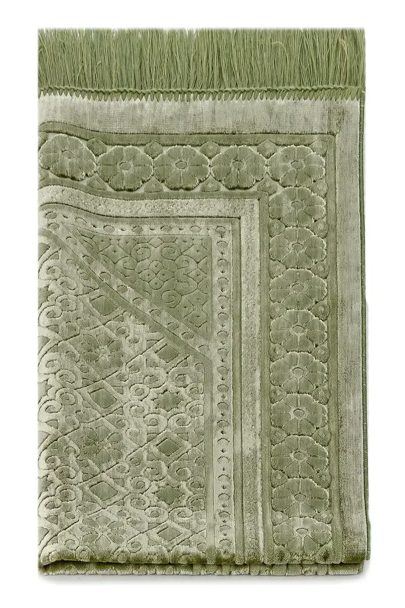 Kadifgi namoz gilami Inci Velvet Pearl Yashil - Osoishta va nafis ibodatlar