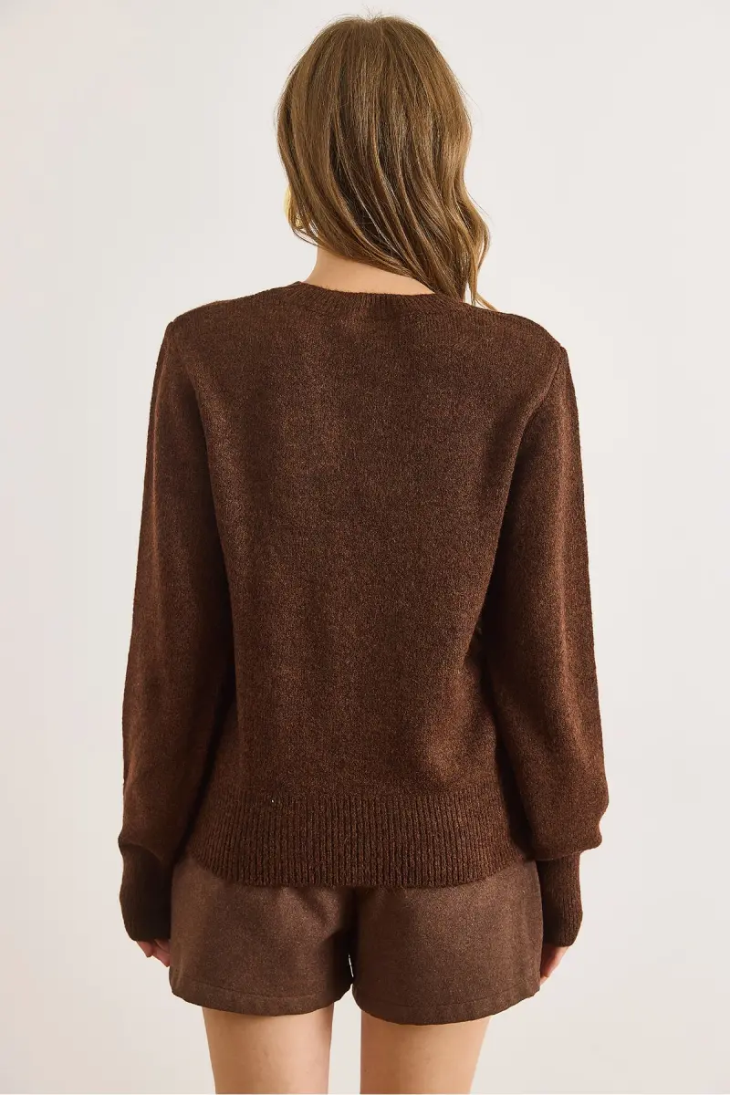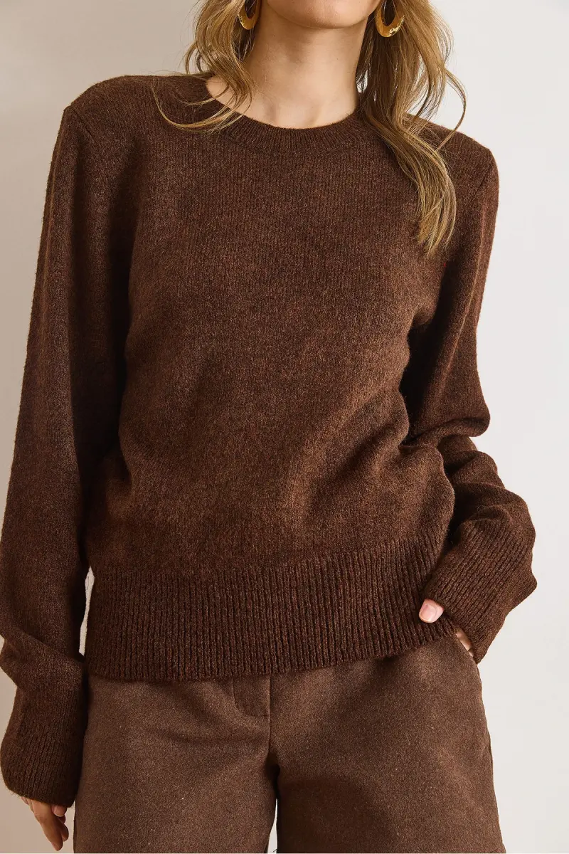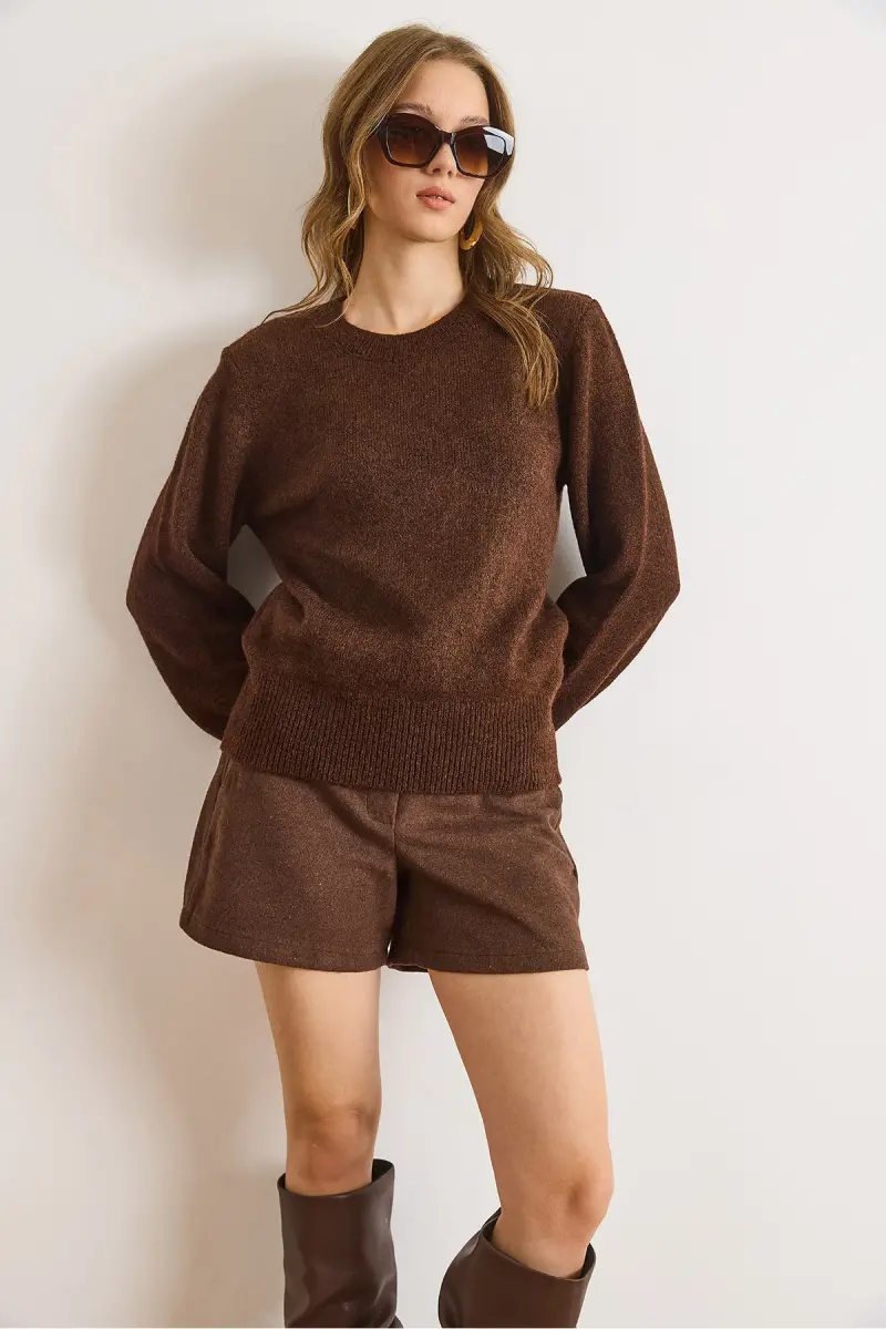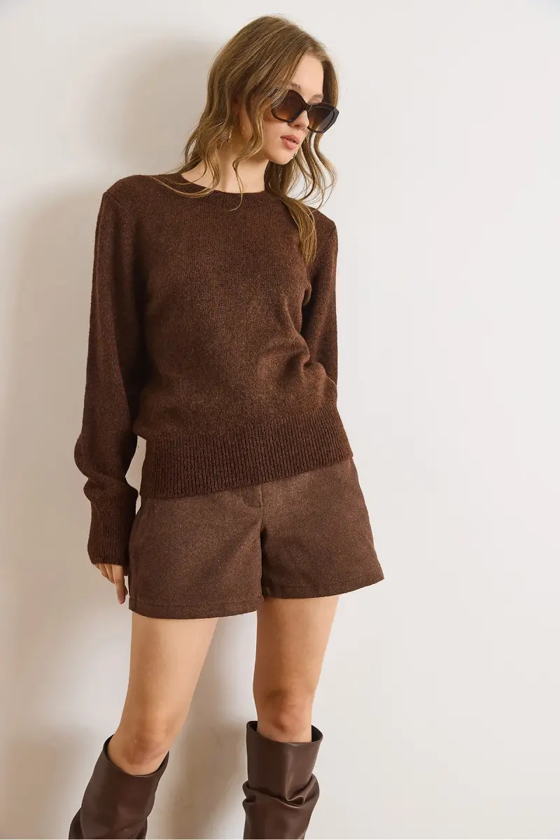 Kadın Acı Kahve Bisiklet Yaka Yumuşak Dokulu Basic Triko Kazak KZK-19000845-Acı Kahve