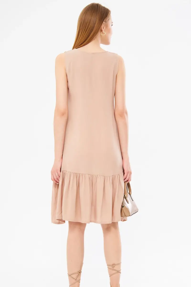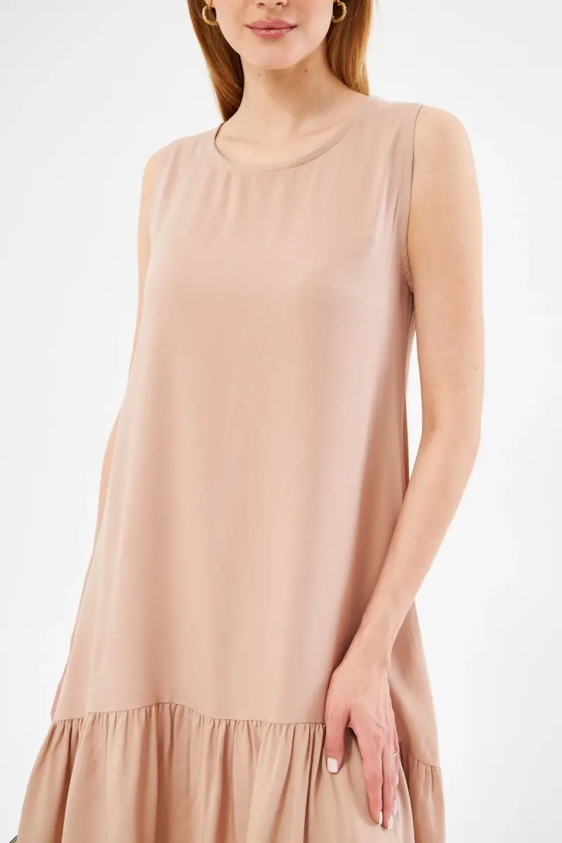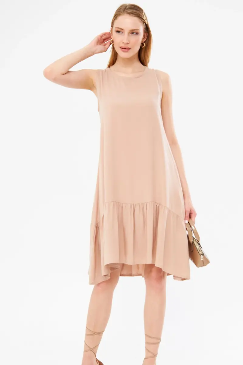 Bu ürün Trendyol tarafından gönderilecektir.Kampanya fiyatından satılmak üzere 5 adetten az stok bulunmaktadır.Bir ürün, birden fazla satıcı tarafından satılabilir. Birden fazla satıcı tarafından satışa sunulan ürünlerin satıcıları ürün için belirledikleri fiyata, satıcı puanlarına, teslimat statülerine, ürünlerdeki promosyonlara, kargonun bedava olup olmamasına ve ürünlerin hızlı teslimat ile teslim edilip edilememesine, ürünlerin stok ve kategorileri bilgilerine göre sıralanmaktadır.Bu üründen en fazla 11 adet sipariş verilebilir. 11 adedin üzerindeki siparişleri Trendyol iptal etme hakkını saklı tutar. Belirlenen bu limit kurumsal siparişlerde geçerli olmayıp, kurumsal siparişler için farklı limitler belirlenebilmektedir.15 gün içinde ücretsiz iade. Detaylı bilgi için [page="return_conditions"]tıklayın .Günlük kullanıma uygun tasarımıyla rahatlığı ve şıklığı bir arada sunan açık bej kolsuz eteği fırfırlı elbise, her ortamda rahatlıkla tercih edilebilirChristmas koleksiyonuna özel tasarlanmış bu elbise, yılbaşı ruhunu yansıtan zarif detaylarıyla dikkat çekerDüz kesimi ve fırfırlı eteği ile modern bir siluet sunan bu elbise, feminen çizgileri ön plana çıkarırBisiklet yaka tasarımı ile sade ve şık bir görünüm sağlargünlük kombinlerinizde kolayca uyum sağlarMidi boyu sayesinde hem rahat hareket etme özgürlüğü sunar hem de farklı ayakkabı seçenekleriyle kombinlenebilirRelaxed kalıbı ile konforlu bir kullanım vaat ederken, düz deseniyle zamansız bir stil oluştururViskon karışımlı materyali sayesinde yumuşak dokusuyla teninize nazikçe dokunur ve uzun süreli kullanım için idealdirTüm yaş gruplarına hitap eden tasarımıyla geniş bir kullanıcı yelpazesine sahiptir