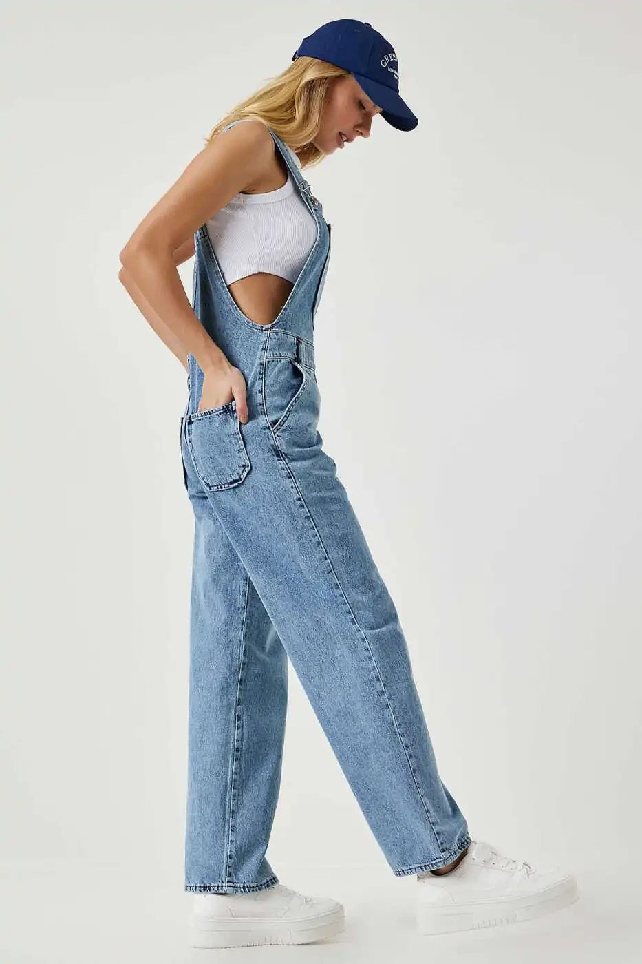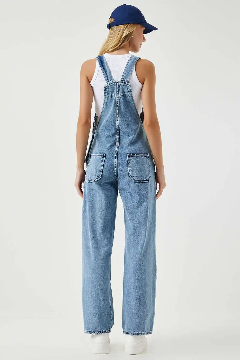 Designed for modern women who seek a stylish and comfortable look, the Women's Light Blue Wide Pocket Denim Dungarees RV00162 is set to become a staple in your wardrobe. Comfortable enough for daily wear, weekend trips, or meeting with friends, these dungarees adapt to any environment with their simple and elegant design. The light blue denim color reflects the energy of spring and summer, while the wide pockets offer practical use. The strapped and square neck design creates a modern and elegant look, while the straight-leg cut offers trendy chic. The button details make it easy to put on and take off the dungarees, while also allowing you to add a personal touch to your style. Made from durable woven fabric, these dungarees are ideal for long-term use. When cared for according to Type 1 washing instructions, they retain their shape and color vibrancy for a long time. Thanks to its regular fit and length, it adapts to different body types and offers a comfortable wearing experience. Thanks to its wide pockets, you can safely carry your phone, wallet and other small belongings. These dungarees are a perfect choice for women looking for both a stylish and practical option. You will feel free and stylish with these dungarees that offer both comfort and elegance. This versatile piece, which you can use with different combinations in every season, will keep its place in your wardrobe for many years. Whether you combine it with a basic t-shirt or an elegant blouse, you will always achieve an eye-catching look.