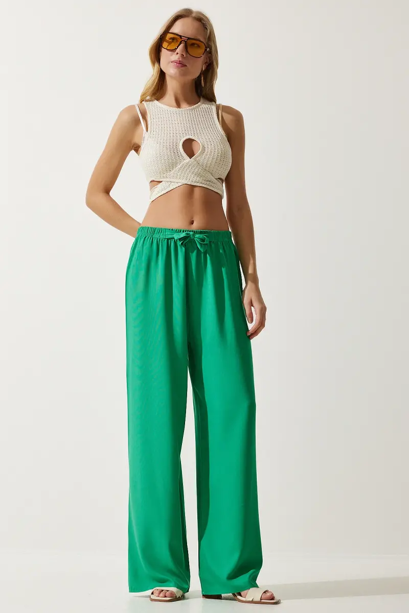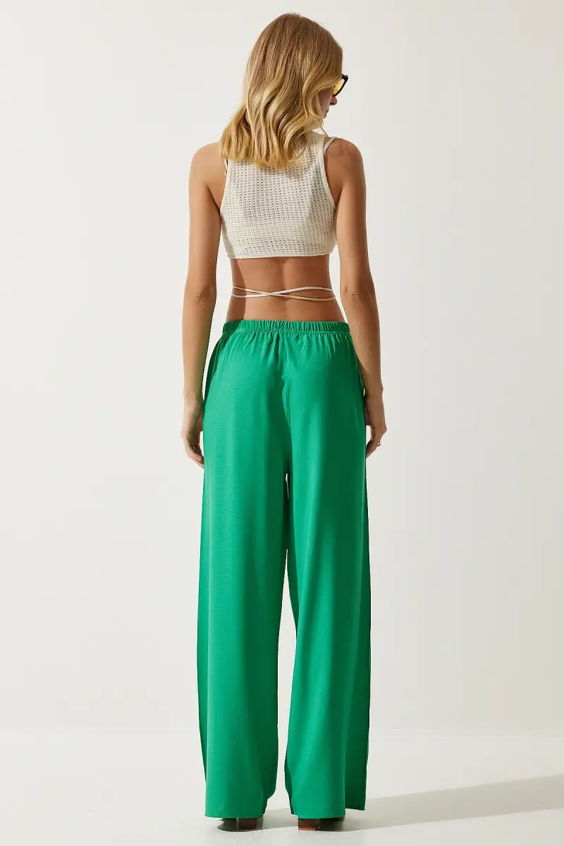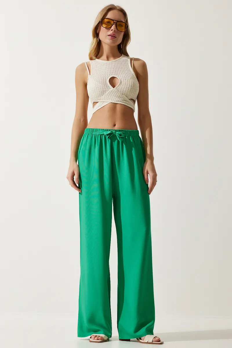 Kadın Açık Yeşil Yazlık Viskon Palazzo Pantolon EN00610-Açık Yeşil
