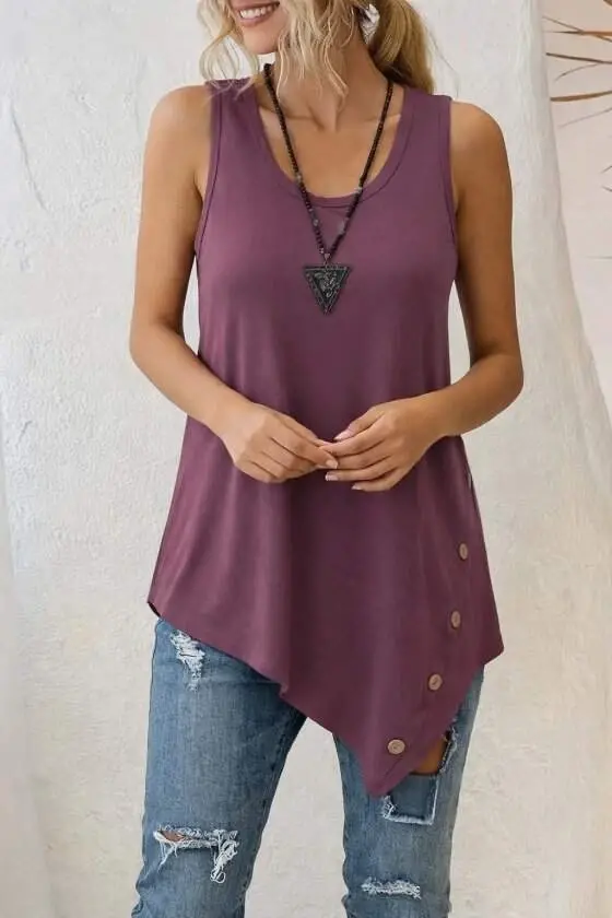 Kadın Askılı Yuvarlak Yakalı Asimetrik Kesim Detaylı Viskon BluzModelin Ölçüleri: Boy: 165, Kg: 55, Göğüs: 90, Bel: 72, Kalça: 100Modelin üzerindeki ürün M/38 bedendirDESEN-DiğerleriKALIP-Askılı