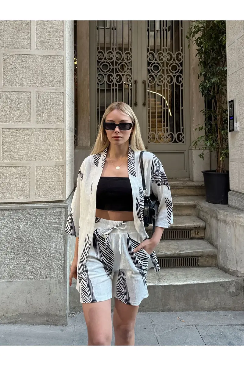 Bu ürün AFROWEAR tarafından gönderilecektir.Kampanya fiyatından satılmak üzere 100 adetten fazla stok sunulmuştur.İncelemiş olduğunuz ürünün satış fiyatını satıcı belirlemektedir.Bir ürün, birden fazla satıcı tarafından satılabilir. Birden fazla satıcı tarafından satışa sunulan ürünlerin satıcıları ürün için belirledikleri fiyata, satıcı puanlarına, teslimat statülerine, ürünlerdeki promosyonlara, kargonun bedava olup olmamasına ve ürünlerin hızlı teslimat ile teslim edilip edilememesine, ürünlerin stok ve kategorileri bilgilerine göre sıralanmaktadır.Bu üründen en fazla 10 adet sipariş verilebilir. 10 adedin üzerindeki siparişleri Trendyol iptal etme hakkını saklı tutar. Belirlenen bu limit kurumsal siparişlerde geçerli olmayıp, kurumsal siparişler için farklı limitler belirlenebilmektedir.15 gün içinde ücretsiz iade. Detaylı bilgi için [page="return_conditions"]tıklayın .Pamuklu kumaş yapısı ile gün boyu konfor sunar.Beyaz-siyah renk kombinasyonu, her ortama uyum sağlar ve zamansız bir tarz oluşturur.Kimono ve şort olmak üzere iki parçadan oluşan takım, kolayca kombinlenebilirliği ile öne çıkar.Bisiklet yaka tasarımı, modern ve şık bir görünüm kazandırır.Zebra deseni ile dinamik ve göz alıcı bir stil vurgusu yapar.Regular kalıp sayesinde rahat bir oturuş sağlarken vücut hatlarını nazikçe sarar.Unisex koleksiyona ait bu takım, hem kadınlar hem de erkekler tarafından tercih edilebilir.Standart kol tipi ile günlük kullanımda rahatlık sunarken kısa kol boyu yaz ayları için idealdir.Sırt baskılı detaylarıyla dikkat çekici bir görünüm kazandırır.Tüm yaş gruplarına hitap eden tasarımıyla geniş bir kullanıcı kitlesine sahiptir.Yıkama talimatına uygun şekilde bakım yapıldığında uzun süreli kullanım imkanı tanır.İki parçadan oluşan set, pratik giyim çözümleri arayanlar için mükemmel bir seçenektir.Dokuma kumaş tipi dayanıklılığı arttırarak ürün ömrünü uzatır.%80 pamuk ve %20 polyester içeriği nefes alabilirlik ve dayanıklılığı arttırır.Orta kalınlıkta kumaşı mevsim geçişlerinde ideal sıcaklık dengesi sağlar.Casual ortamlarda rahatlıkla tercih edebileceğiniz bu takım her türden aktiviteye eşlik eder.Uzun boy kesimiyle modern siluetinizi korurken boru paça tasarımı şık bir bitiş sunar.