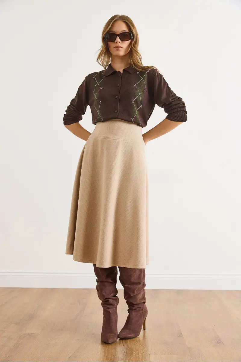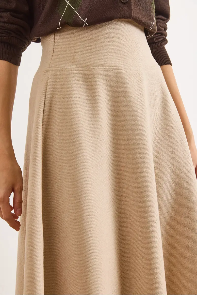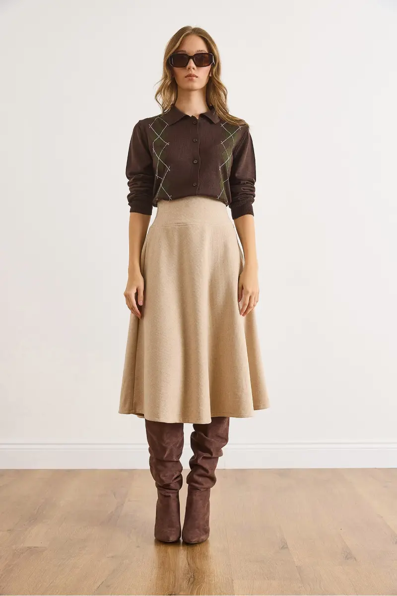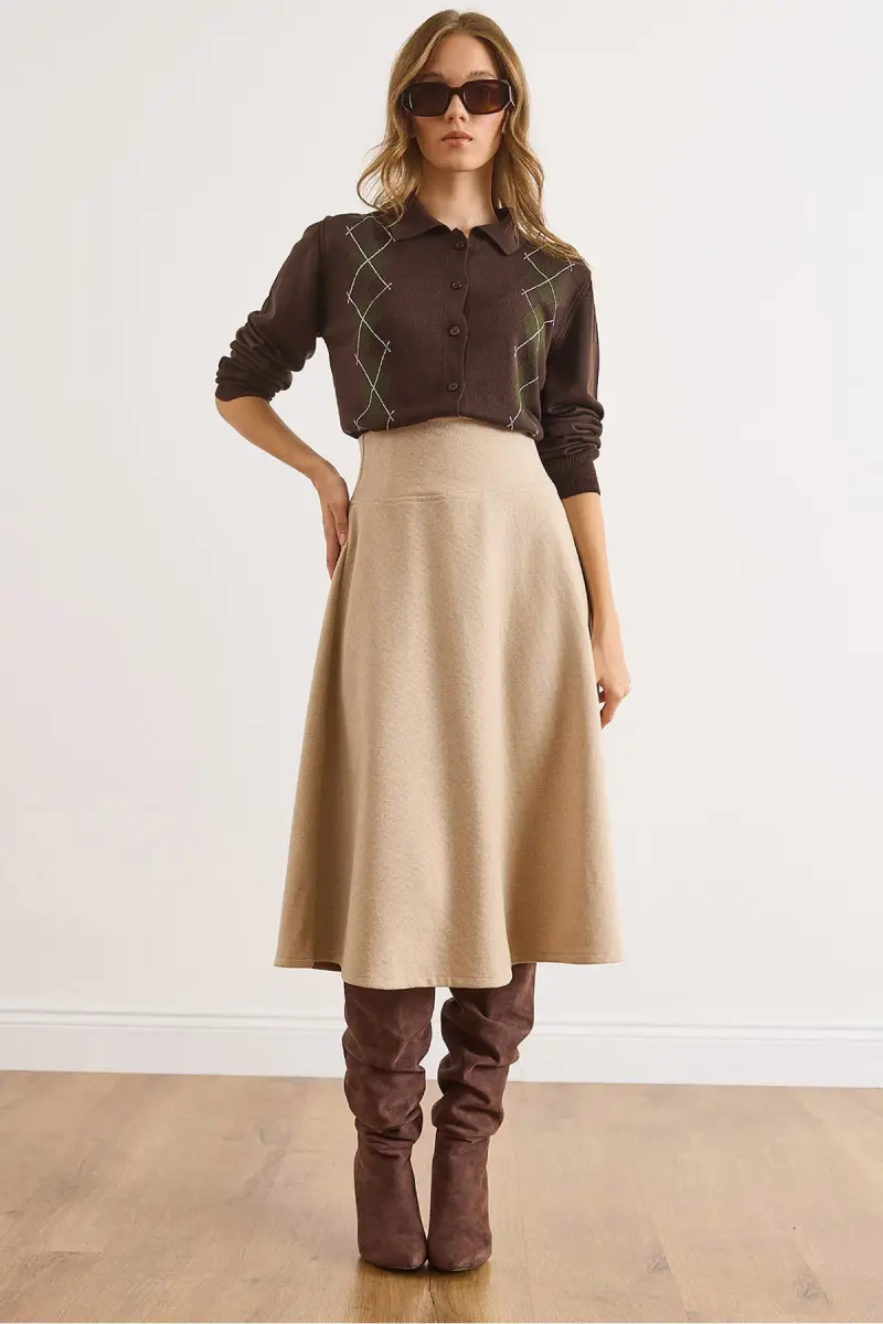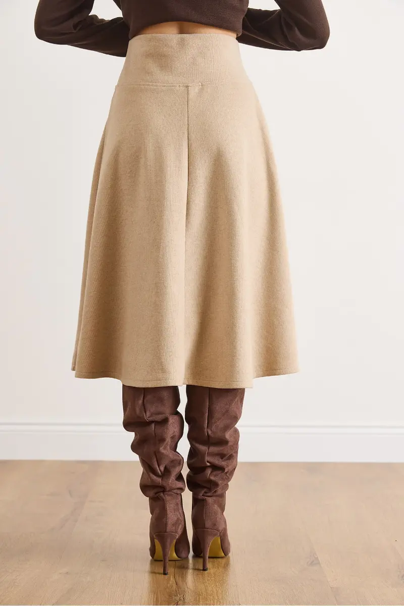 Kadın Bej Beli Bantlı Selanik Çan Etek ETK-19000297-Bej