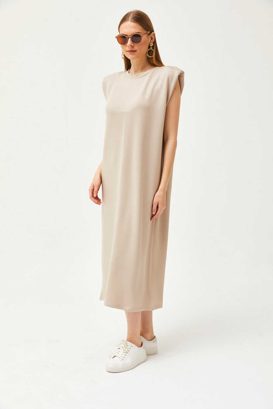 Zarif ve göz alıcı bir görünüm için mükemmel seçim! Kadın Bej Omuzu Vatkalı Kristal Elbise, şıklığı ve zarafetini bir araya getiriyor. Bej rengi ile her ten rengine uyum sağlayan elbise, omuzlarında bulunan zarif vatkaları ve göz alıcı kristal süslemeleri ile dikkat çekiyor.