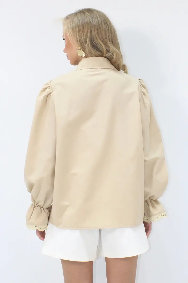 Kadın Bej Prenses Kol Güpür Nakışlı Dokuma Gömlek Alc-X7829-BEJ