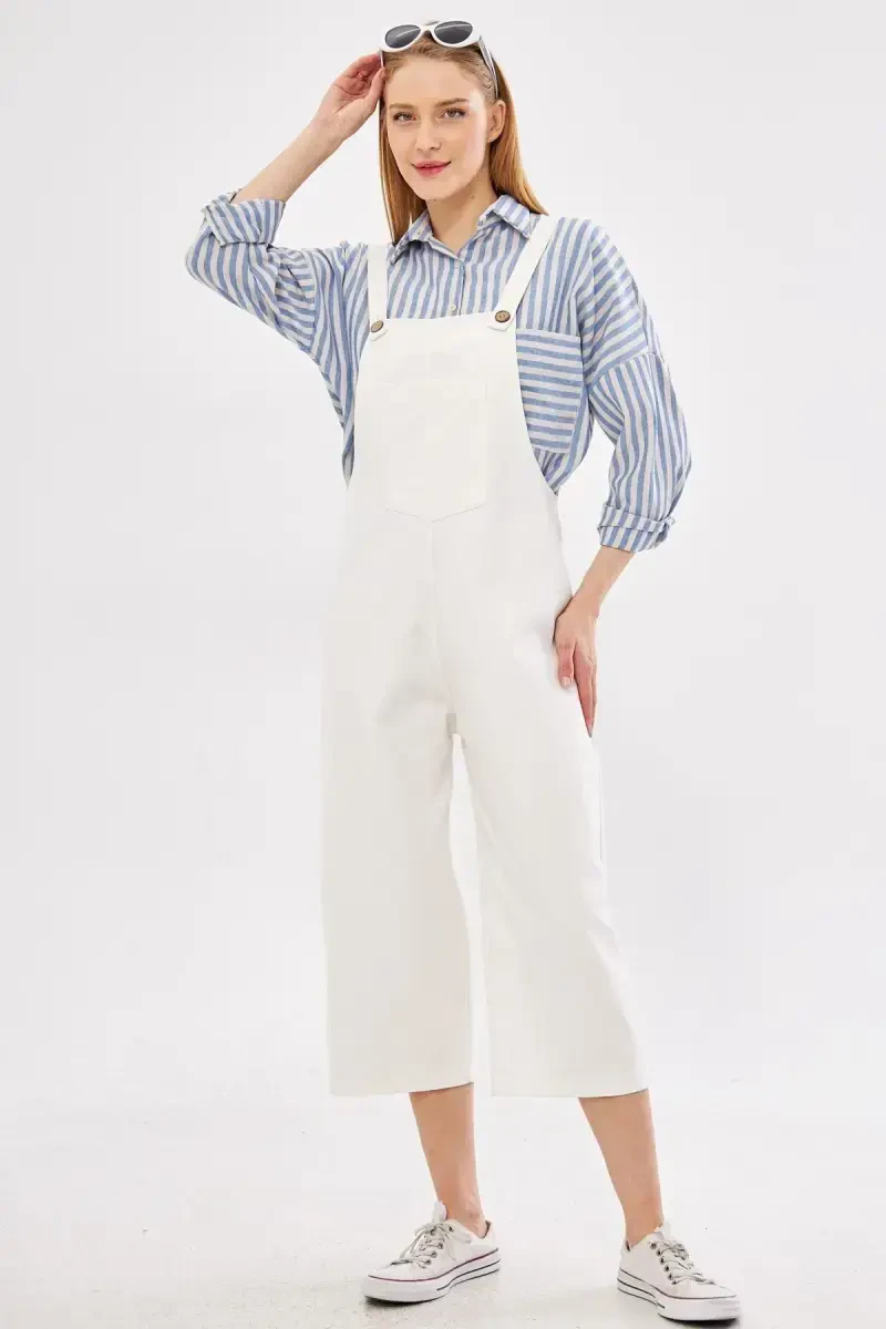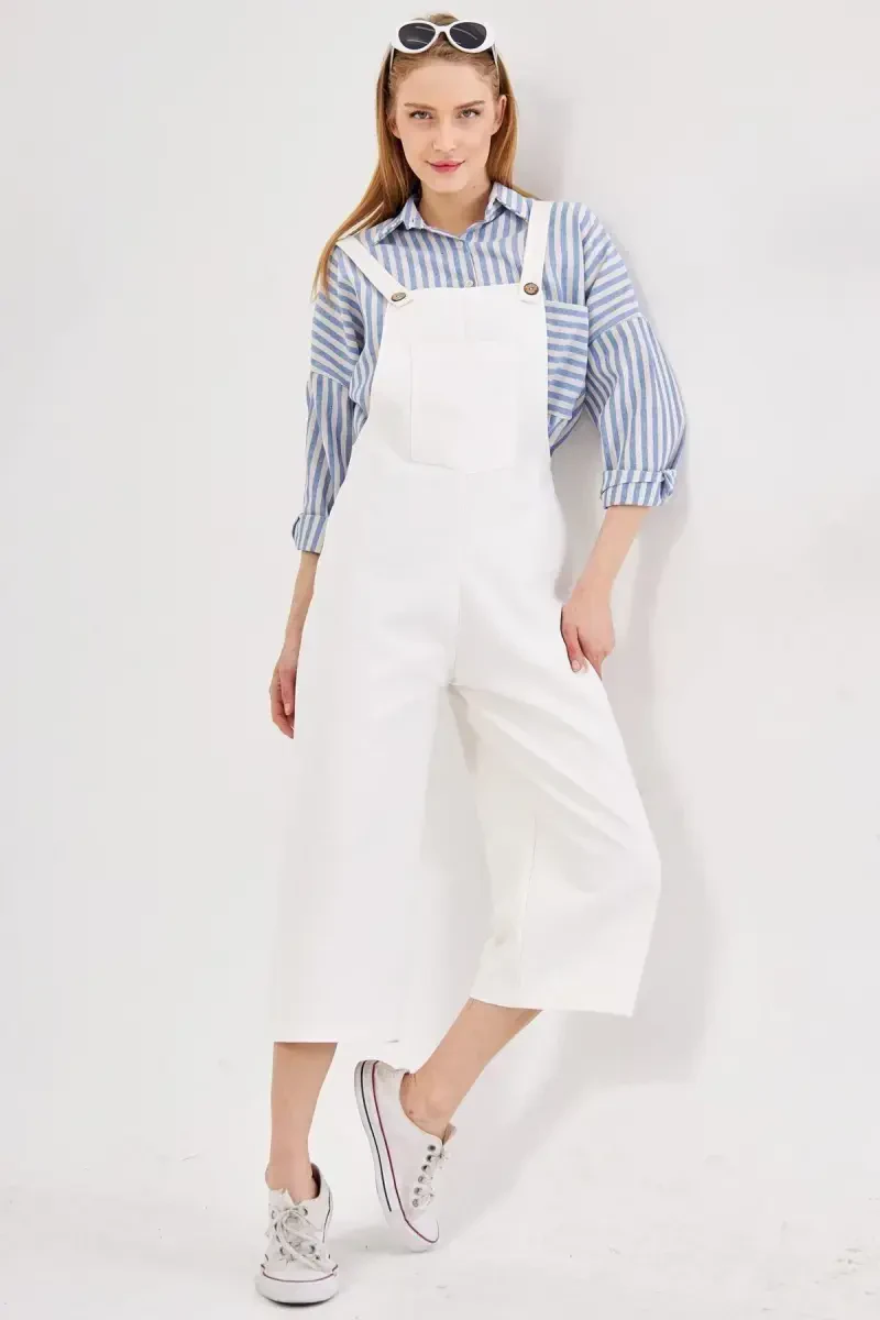 Kadın Beyaz Bahçıvan Tulum ARM-20K001117-Beyaz, ARMONİKA tarafından özenle tasarlanmış, günlük kullanım için ideal, rahat ve şık bir seçenektir. Standart kol ve boru paça kesimi sayesinde klasik ve zamansız bir görünüm sunarken, düz renk tasarımıyla her türlü kombinle kolayca uyum sağlar. Bu bahçıvan tulum, regular boyu ve kalıbıyla vücut hatlarını nazikçe sarar, gün boyu konforlu bir kullanım deneyimi sunar. Dokuma kumaşının dayanıklılığı, uzun ömürlü kullanım imkanı tanırken, Type 1 yıkama talimatına uygunluğu sayesinde kolayca temizlenebilir ve ilk günkü görünümünü korur. Basic koleksiyonun vazgeçilmez bir parçası olan bu tulum, gardırobunuzdaki temel parçalardan biri olmaya adaydır. Askılı kol boyu özellikle yaz aylarında serinlik ve rahatlık sağlarken, kare yaka detayı tasarıma modern bir dokunuş katar. Düz deseniyle sadeliği ön planda tutan bu tulum, pamuk ve polyester karışımından üretilmiştir. Bu özel materyal bileşimi, hem nefes alabilirlik hem de dayanıklılık sunar. Comfort dokuma tipi sayesinde gün boyu üzerinizde yokmuş gibi rahat edersiniz. Bu tulum, şıklığı ve konforu bir araya getiren, her kadının gardırobunda olması gereken bir parçadır. Gerek günlük aktivitelerinizde gerekse özel anlarınızda size eşlik edecek olan bu tulum, stilinizi tamamlayacak ve size özgüven katacaktır. ARMONİKA kalitesiyle üretilen bu bahçıvan tulum, uzun yıllar boyunca severek kullanacağınız bir yatırım olacaktır.