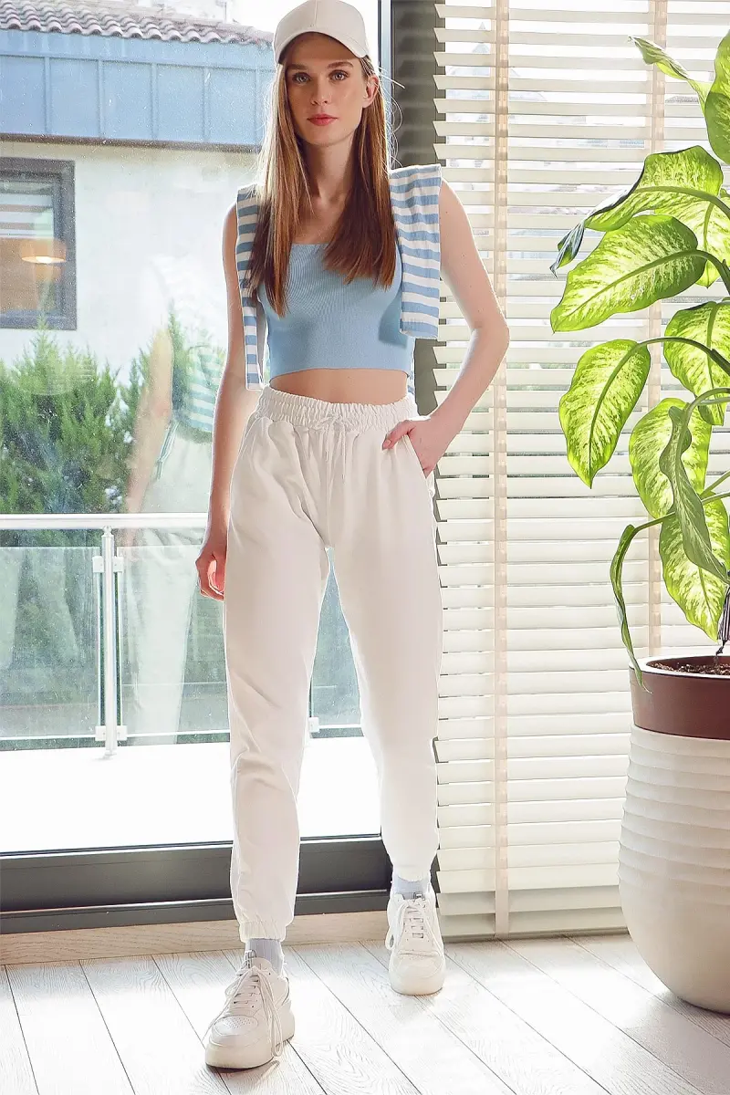 Kadın Beyaz Beli Ve Paçası Lastikli Basic Eşofman Altı Alc-X5902-BEYAZ