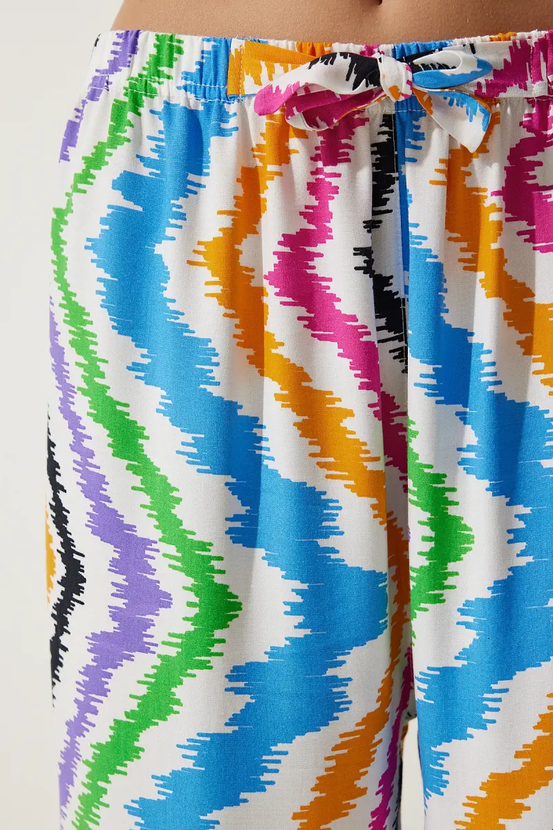 Bu ürün Trendyol tarafından gönderilecektir.Kampanya fiyatından satılmak üzere 100 adetten fazla stok sunulmuştur.İncelemiş olduğunuz ürünün satış fiyatını satıcı belirlemektedir.Bir ürün, birden fazla satıcı tarafından satılabilir. Birden fazla satıcı tarafından satışa sunulan ürünlerin satıcıları ürün için belirledikleri fiyata, satıcı puanlarına, teslimat statülerine, ürünlerdeki promosyonlara, kargonun bedava olup olmamasına ve ürünlerin hızlı teslimat ile teslim edilip edilememesine, ürünlerin stok ve kategorileri bilgilerine göre sıralanmaktadır.Bu üründen en fazla 10 adet sipariş verilebilir. 10 adedin üzerindeki siparişleri Trendyol iptal etme hakkını saklı tutar. Belirlenen bu limit kurumsal siparişlerde geçerli olmayıp, kurumsal siparişler için farklı limitler belirlenebilmektedir.15 gün içinde ücretsiz iade. Detaylı bilgi için [page="return_conditions"]tıklayın .Basic koleksiyonunun bir parçası olarak tasarlanan bu pantolon, günlük kullanım için idealdirDokuma kumaş yapısı sayesinde dayanıklılığı ve konforu bir arada sunarNormal bel kesimi ile rahat bir oturuş sağlar ve gün boyu konforlu bir deneyim sunarGöz alıcı desenli tasarımı ile stilinizi canlandırır ve dikkat çekici bir görünüm kazandırırType 1 yıkama talimatına uygun şekilde kolayca temizlenebilir, böylece pantolonunuzun ilk günkü gibi kalmasını sağlarPalazzo kalıbı ile modern ve geniş kesimi sayesinde hareket özgürlüğünüzü kısıtlamazUzun boyu ve boru paça tasarımı ile şık bir siluet oluştururken, her türlü ayakkabı ile kombinlenebilirliği artırırTüm yaş gruplarına hitap eden tasarımıyla geniş bir kullanıcı yelpazesine sahiptirHavuç/şalvar silueti ile trend bir görünüm sunarken, dijital baskı tekniği detaylarıyla
