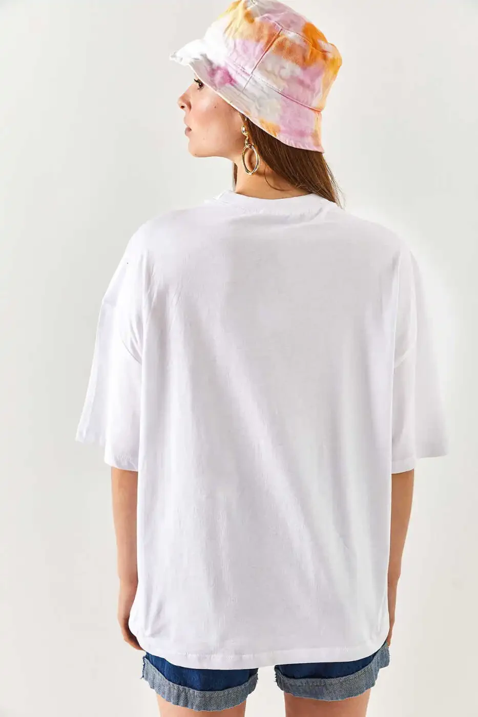 Kadın Beyaz Omuzu Gold Düğmeli Pamuk Tişört TSH-19000763 ile tarzınızı ön plana çıkarın!