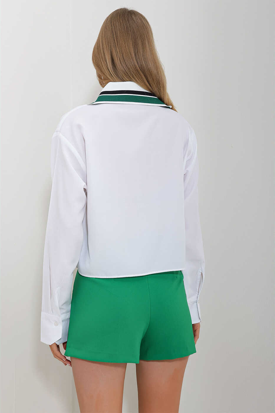 Kadın Beyaz Renk Bloklu Armalı Nakışlı Poplin Gömlek ALC-X11613'ün Özellikleri: