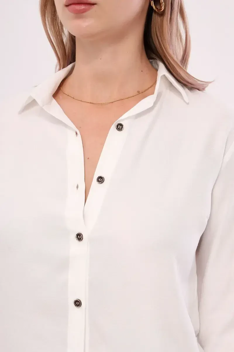 Идеальный выбор, чтобы добавить изысканности вашему повседневному стилю, женская белая рубашка с длинным рукавом станет незаменимой частью вашего гардероба благодаря своему вневременному дизайну и комфортной ткани. Благодаря своему белому цвету эта рубашка, которую можно сочетать с любым нарядом, поможет вам создать стильный образ как в повседневной жизни, так и на особых мероприятиях.