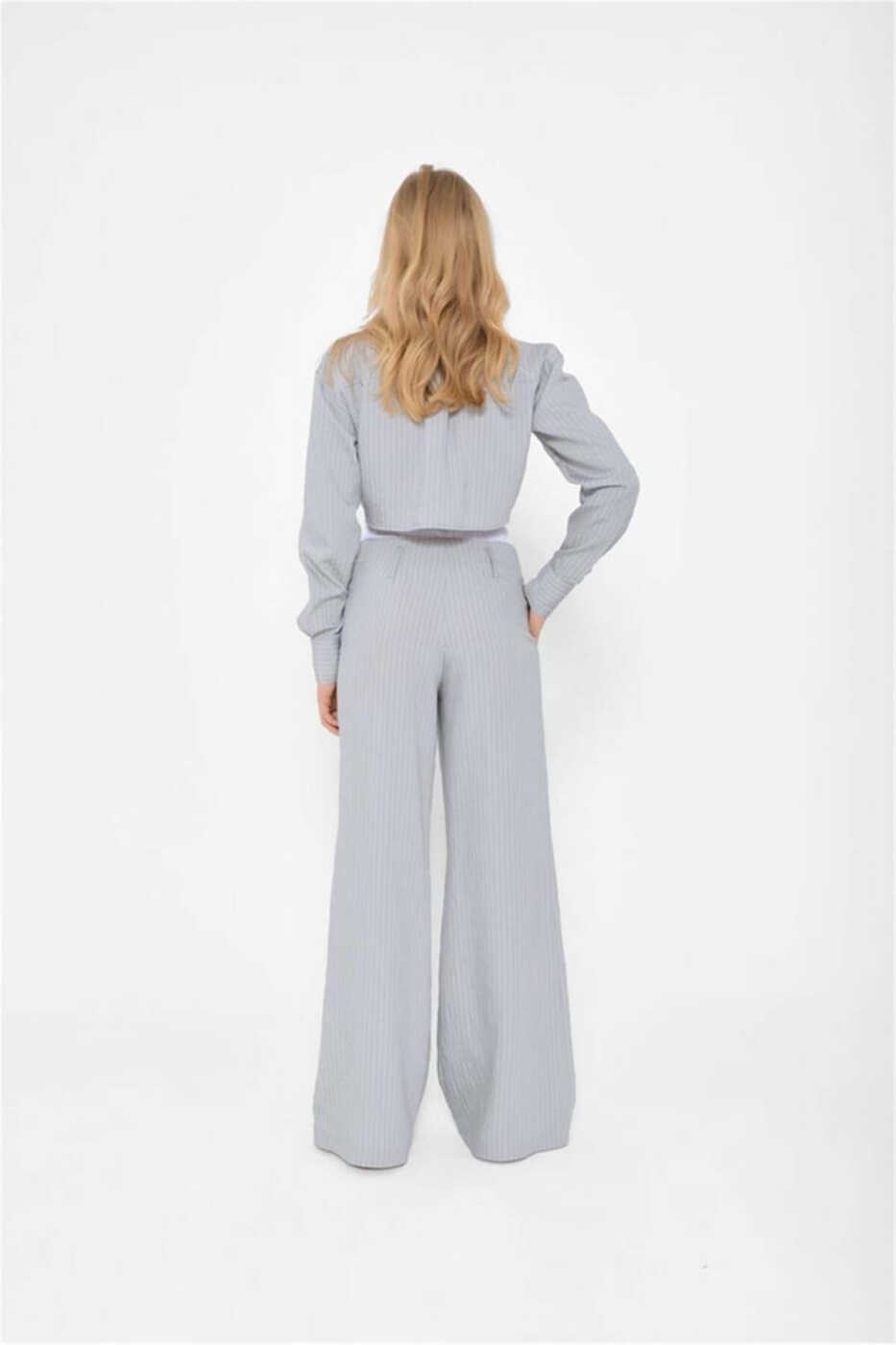 Women's BG Striped Boxer Detailed Crop Shirt Wide Leg Fit Trousers Set Grey - For a Stylish and Comfortable Look